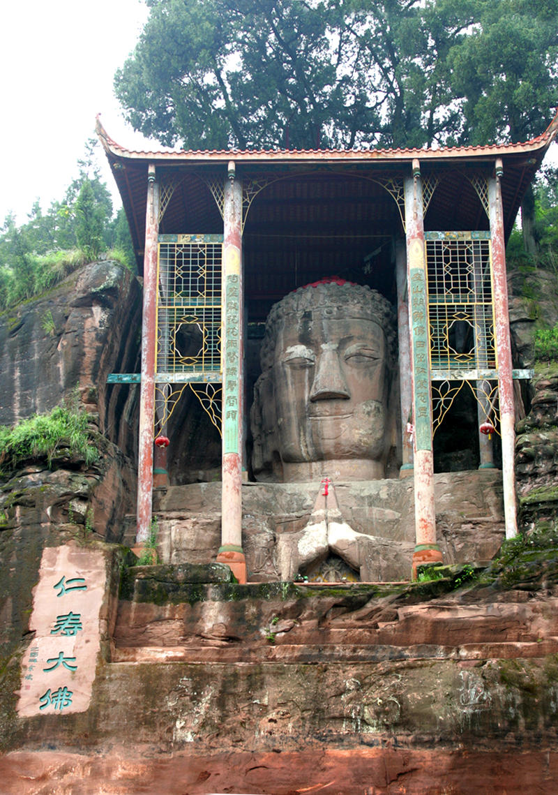 与乐山大佛的风光八面相比,仁寿大佛的命运却令人担忧。如今,仁寿大佛的面部、胸部因风化导致石层脱落,“毁容”程度相当严重。仁寿大佛虽已被列入“全国重点文物保护”,但千百年来,从未享受过一次 “整容”待遇。就连这间遮风避雨的“大佛阁” 也是民间人士捐资而建。 (来自:朱建国)