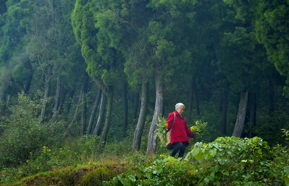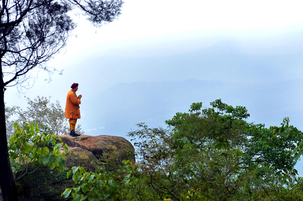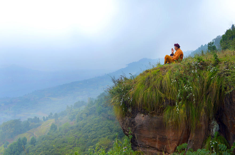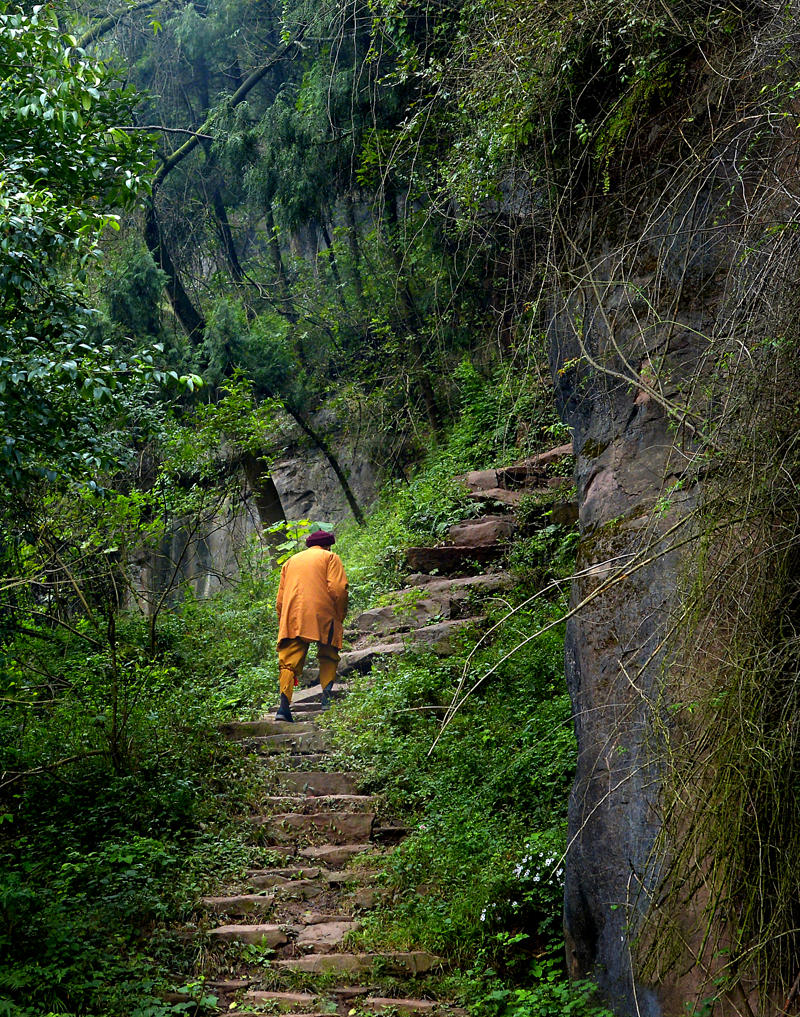 守佛人,80岁高龄的释心月如今每天依然坚持巡视通往大佛头顶的这条崎岖山道。 (来自:朱建国)