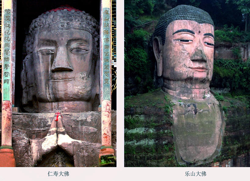 大型雕像的雕凿,即便是现代,也要先有一个小比例的初始蓝本,也称雕塑小样。仁寿大佛出生100年之后,乐山大佛才建成。兄弟两仅相距约60多公里,长相惊人相似,据考古专家推测,仁寿大佛很有可能就是乐山大佛的 “试验蓝本”。 (来自:朱建国)