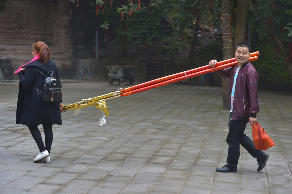 时有年轻人专程前来为大佛烧高香。 (来自:朱建国)