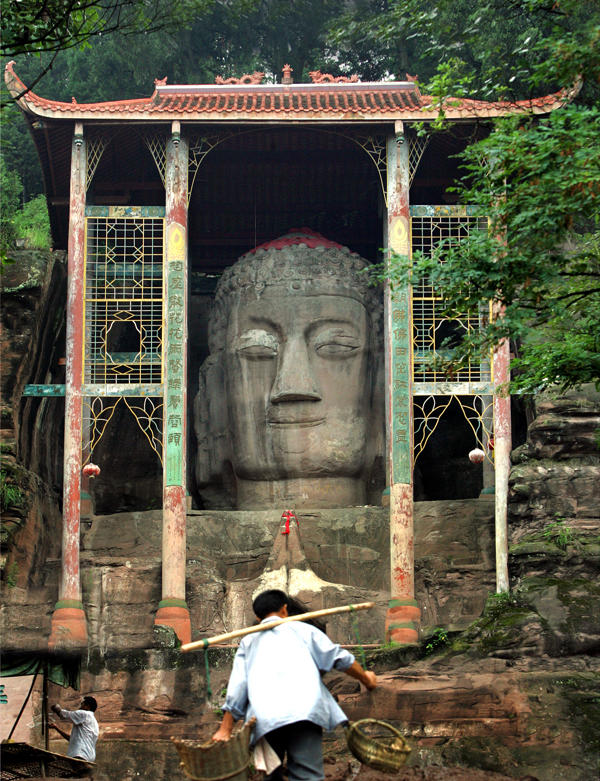 20年前,仁寿大佛就是这样日夜裸露于风雨中。 (来自:朱建国)