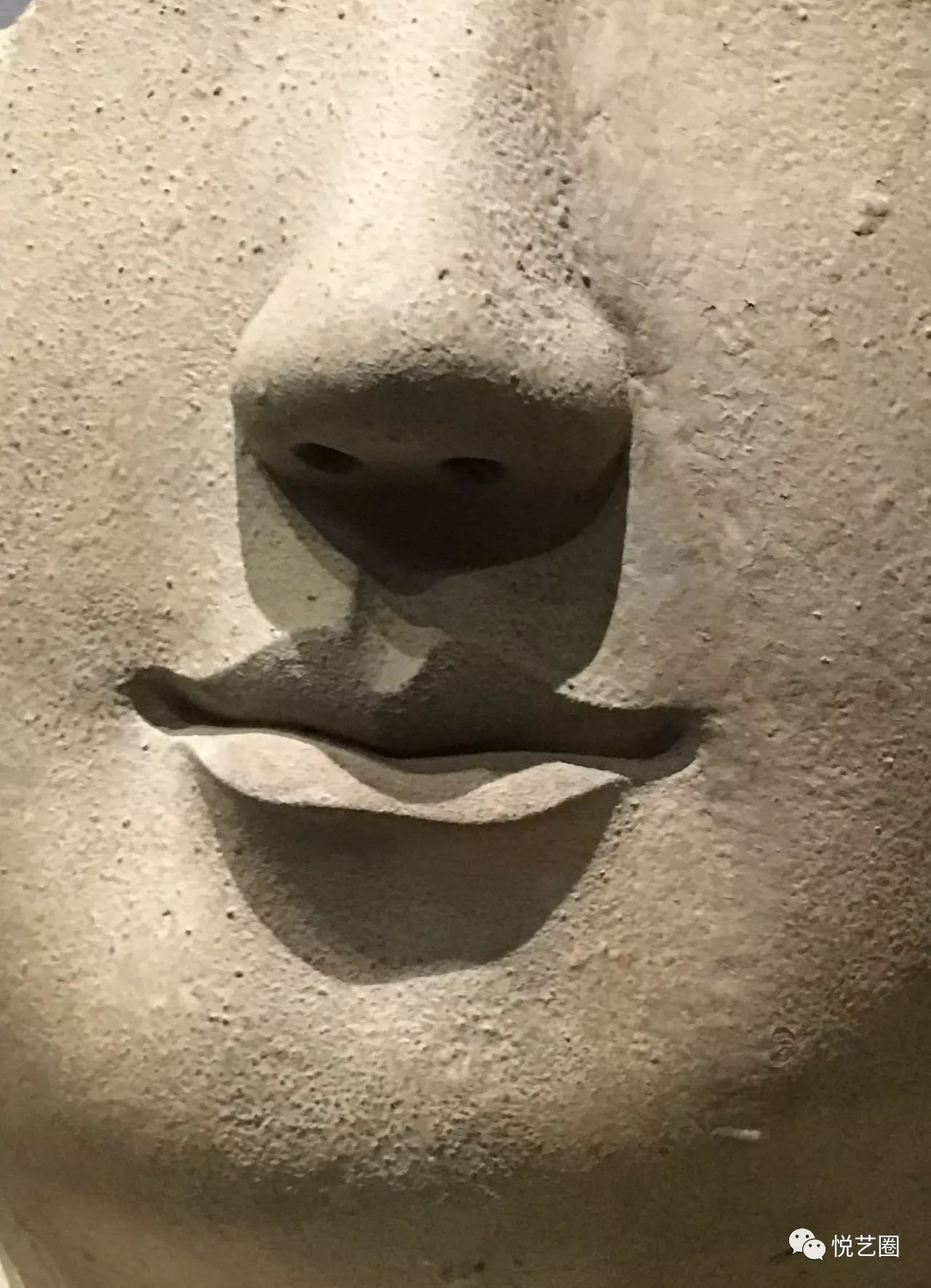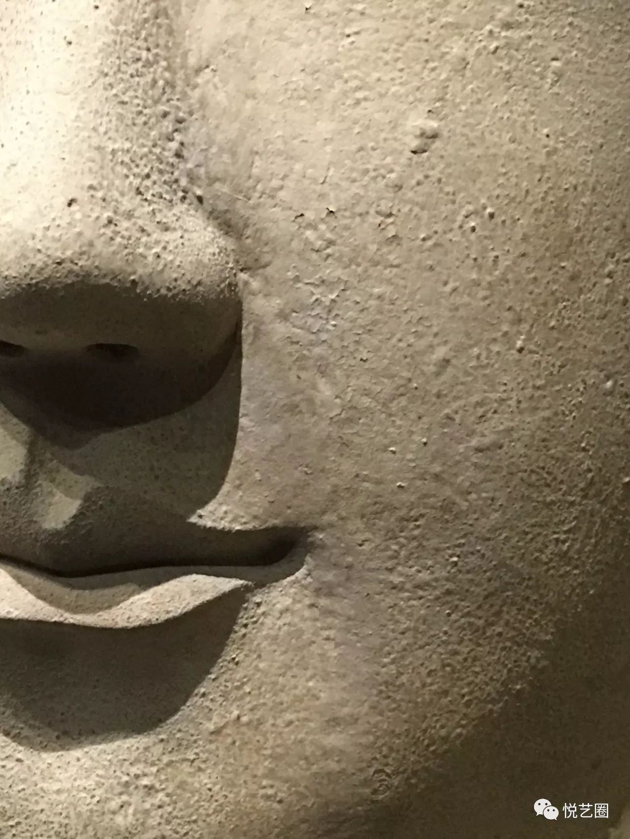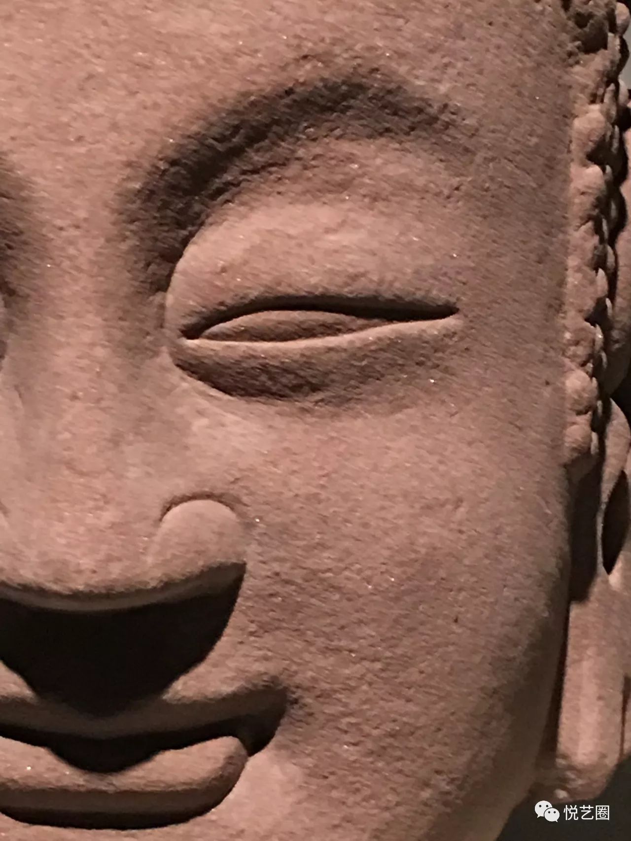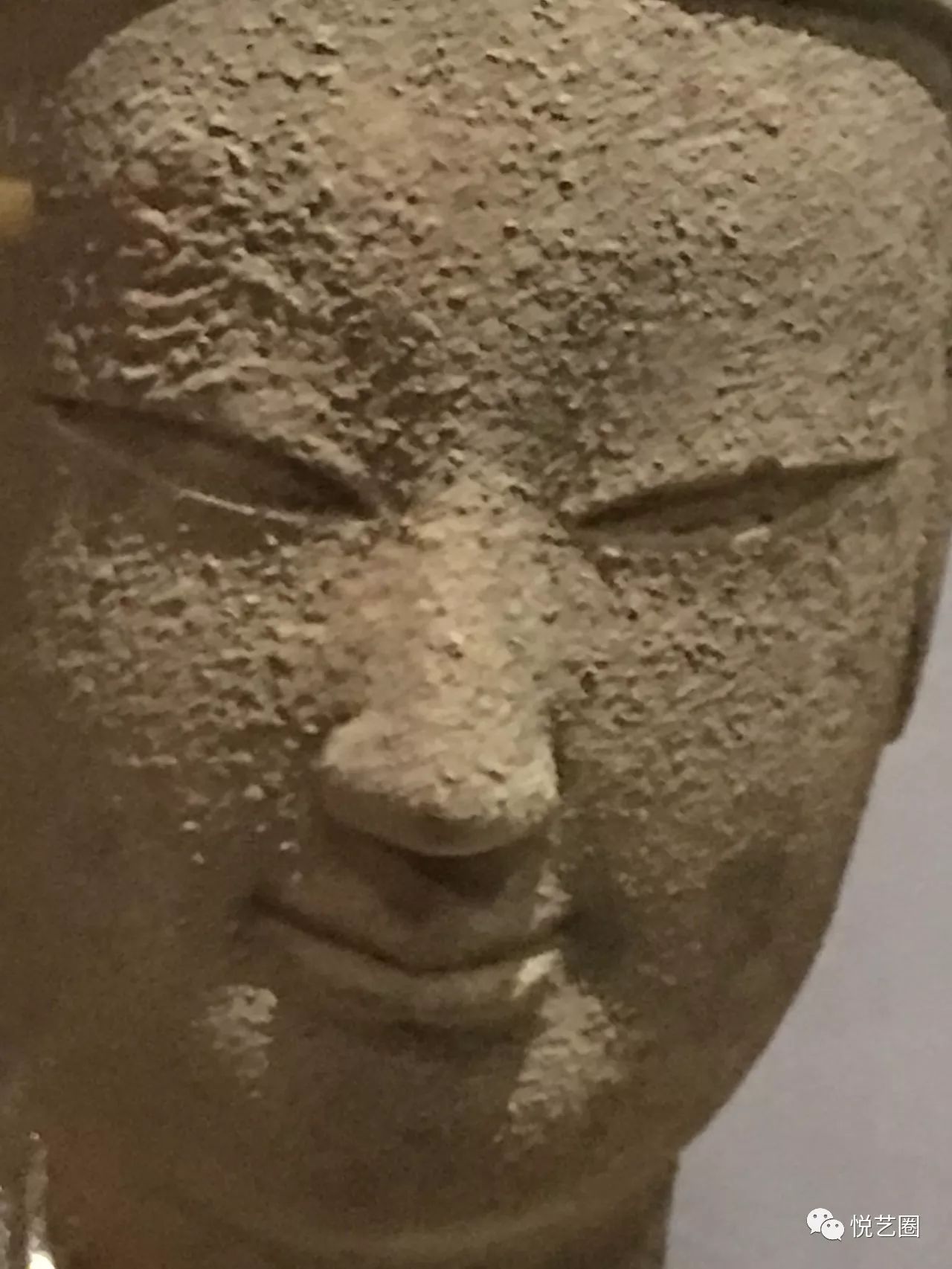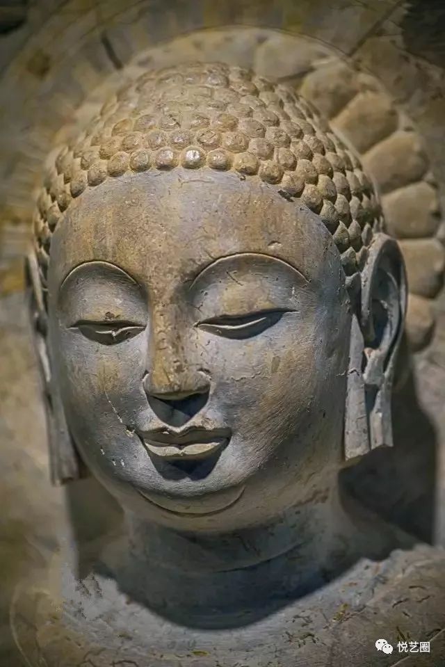 你看,这张残缺的佛面像,嘴角那一抹微笑,传递着神秘。高挺丰满的鼻梁,透着禅思。丰神俊朗的脸,昭示着亲和与淡泊;而,那双消失的眼,残缺的美,引发无限想象......