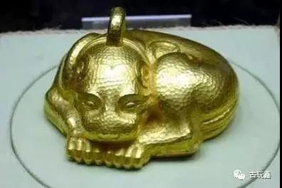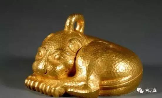 “黄”指质地为黄金,“六”为序数。通常所见的金器大都是捶击而成,而这件金兽是古代金属铸造工艺和金器捶击工艺这两种技法完美结合的产物,实属罕见,因此弥足珍贵。根据外形特征,推测金兽的铸造时代大约在战国晚期至西汉早期。