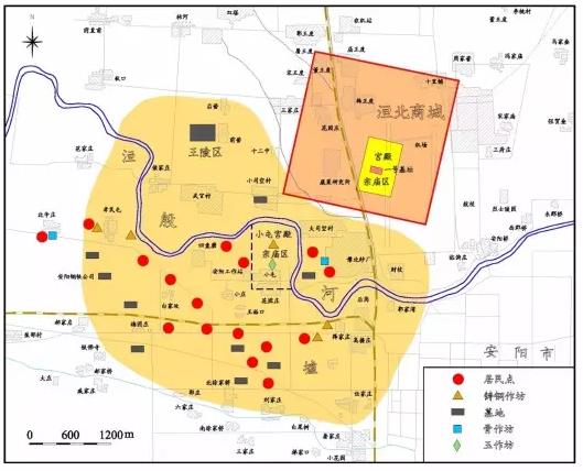 因为西侧这个地方,就是我标的1、2、3、4、5这个位置,过去曾经有不同的考古发现。一是1959年我们有考古队员在一个地方捡了几块陶片,商代的;二是当地老百姓挖红薯窖挖出一窝铜器;三是有人挖猪圈挖出一窝铜器,等等。