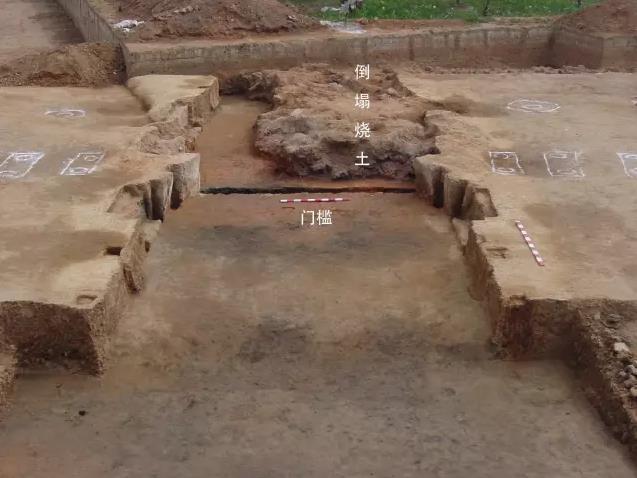 把宫殿的门道清理出来,可以看到门槛,倒塌的烧土、倒塌的墙坯、倒塌的屋顶,还有一把火烧过以后被烤成了酱红色或者黑色的地面,墙块、屋顶都在。