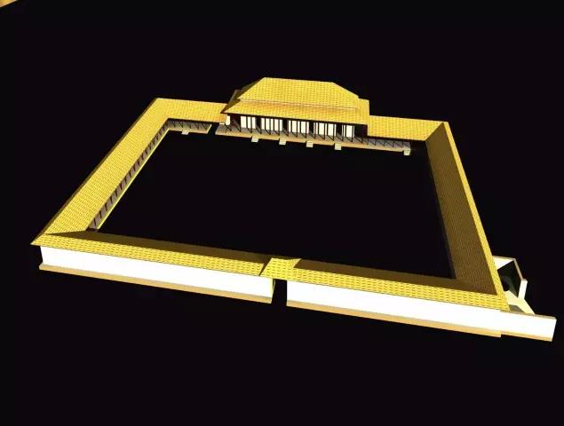 这是我们挖的另一个建筑。挖出来以后照样可以把它复原出来,得到一个典型的四合院。
