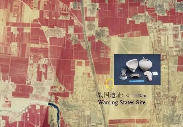 但是我很紧张。为什么紧张呢?因为我在这个遗址的附近不小心捡了十几块战国的陶片。大家知道,战国比商朝晚很多,那你捡了战国陶片是不是后面那个建筑基址是战国的?