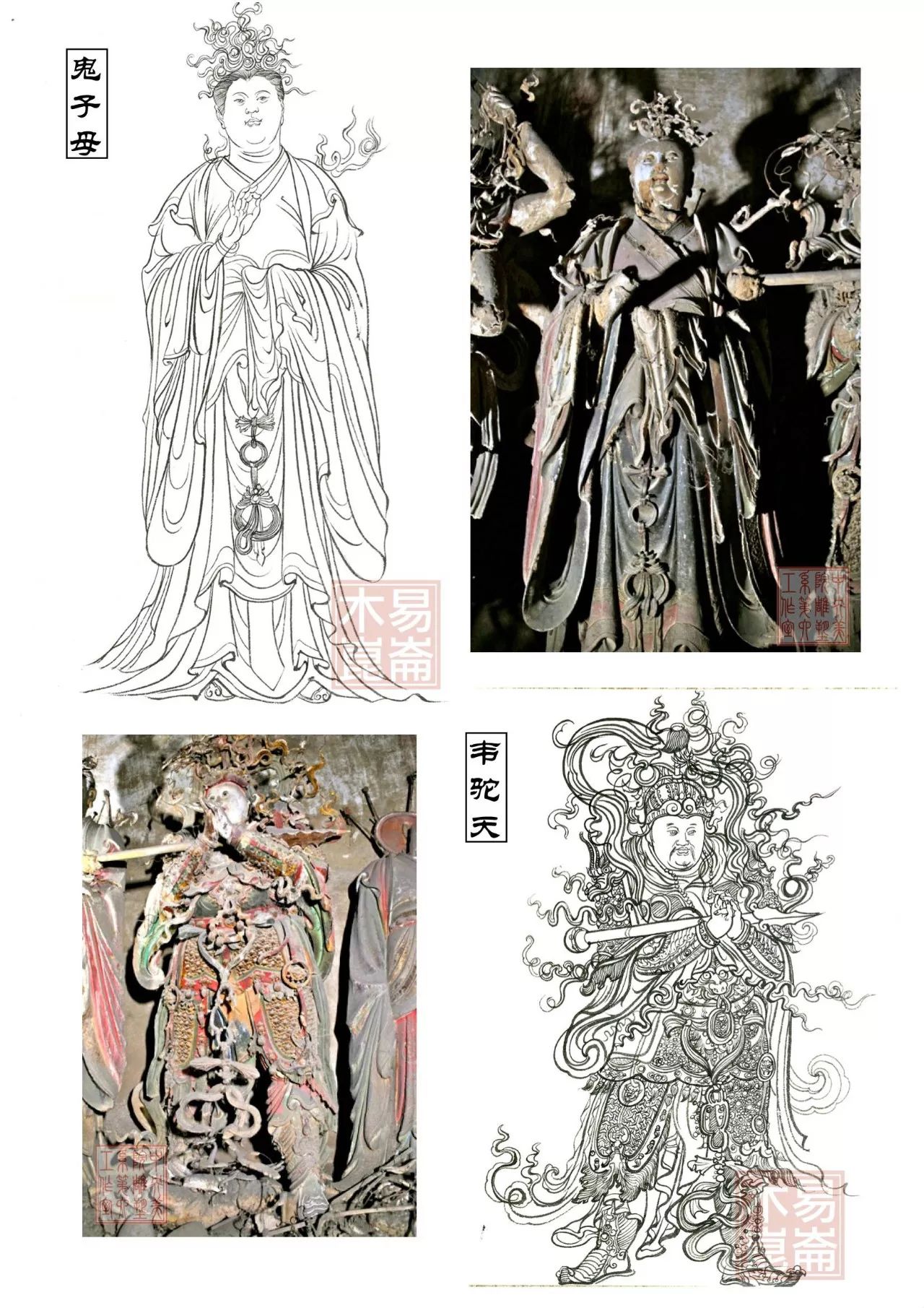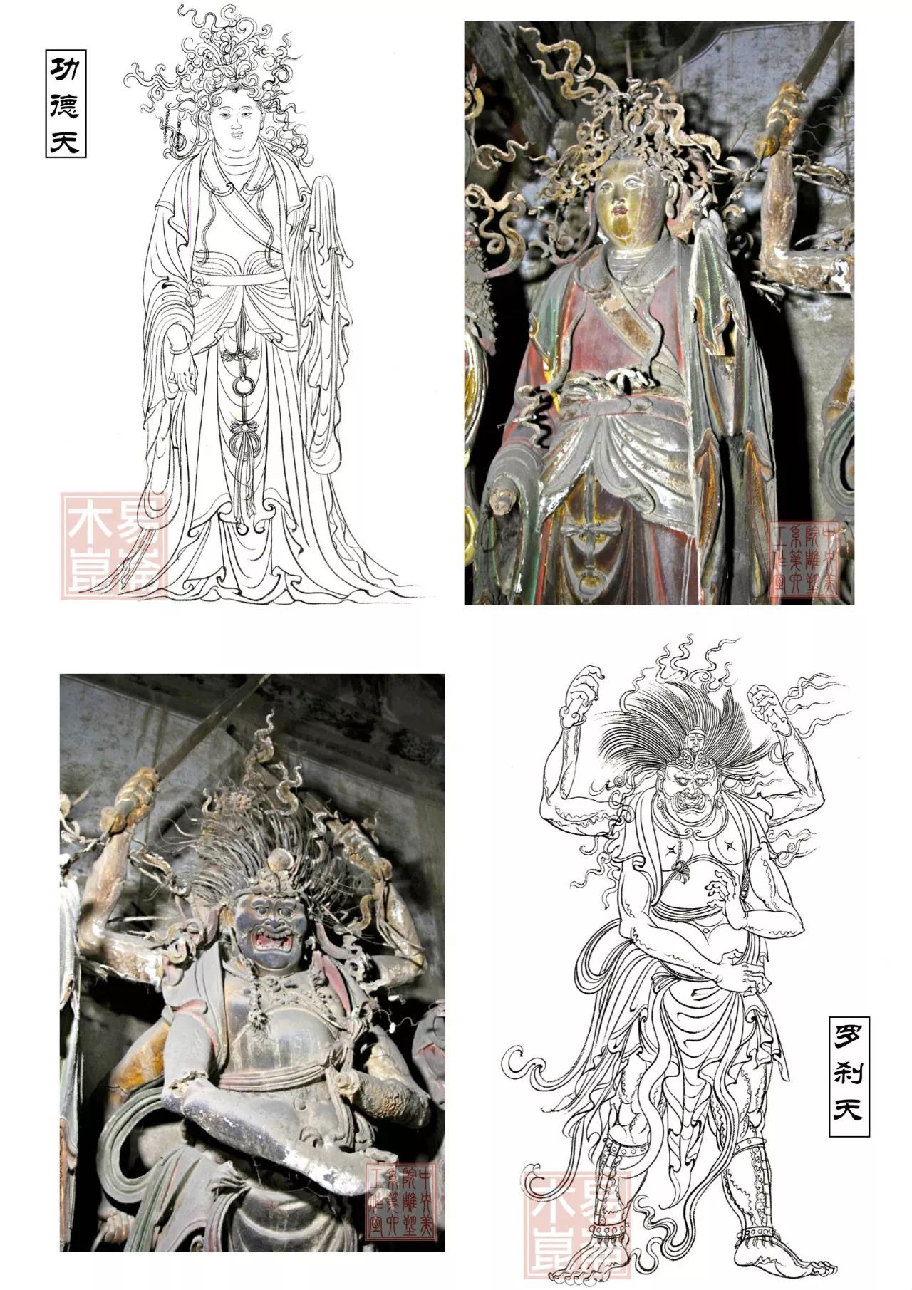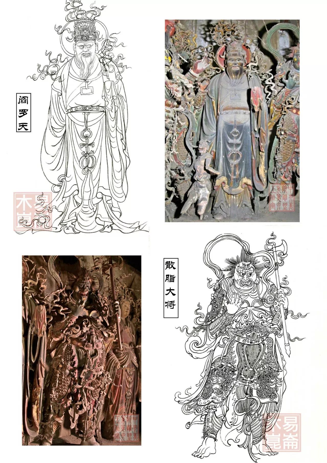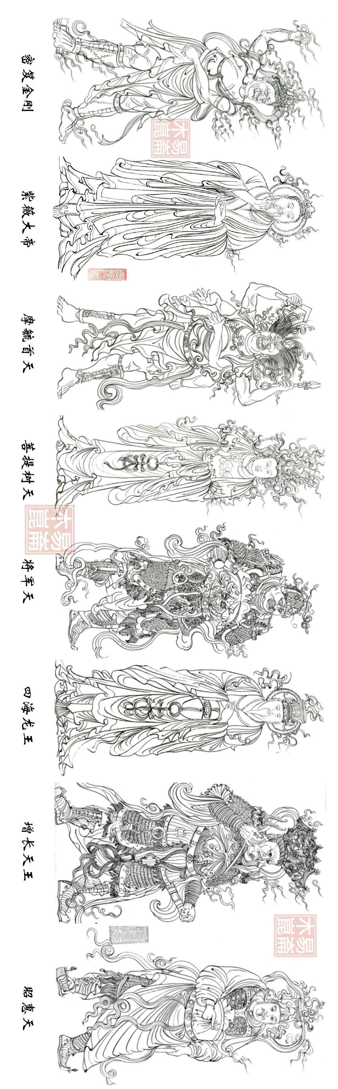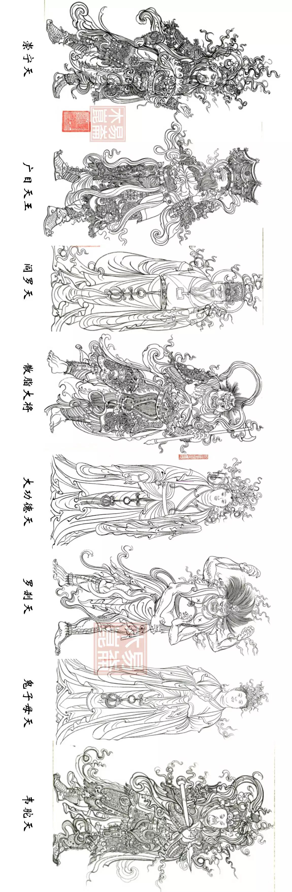 铁佛寺最震撼到人的心灵的彩塑当属环绕佛殿四周的二十四诸天造像。2016年初冬,一次偶然的机会,我再次经过铁佛寺,并有幸在寺内留了下来,用毛笔记录了二十四诸天的一些形象。
