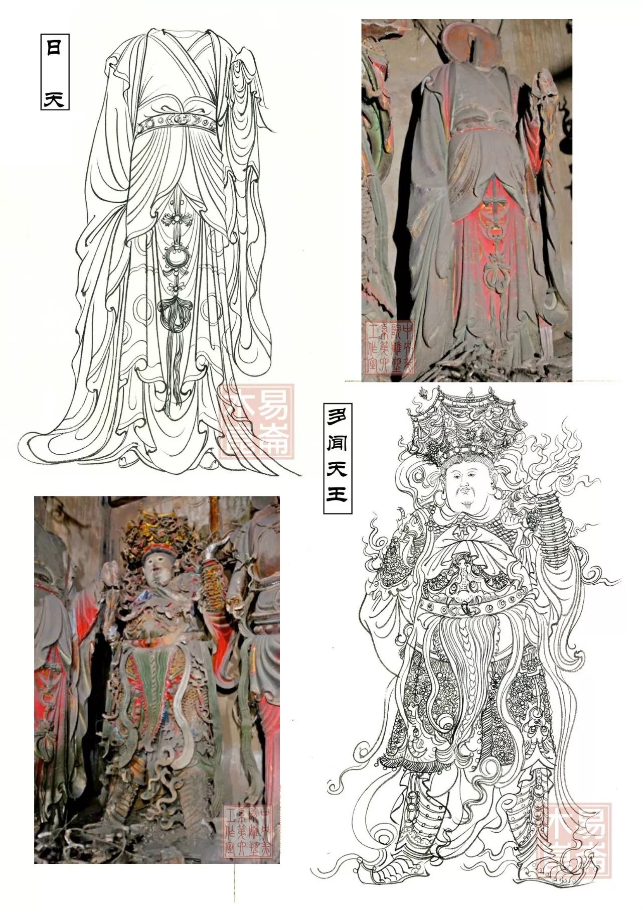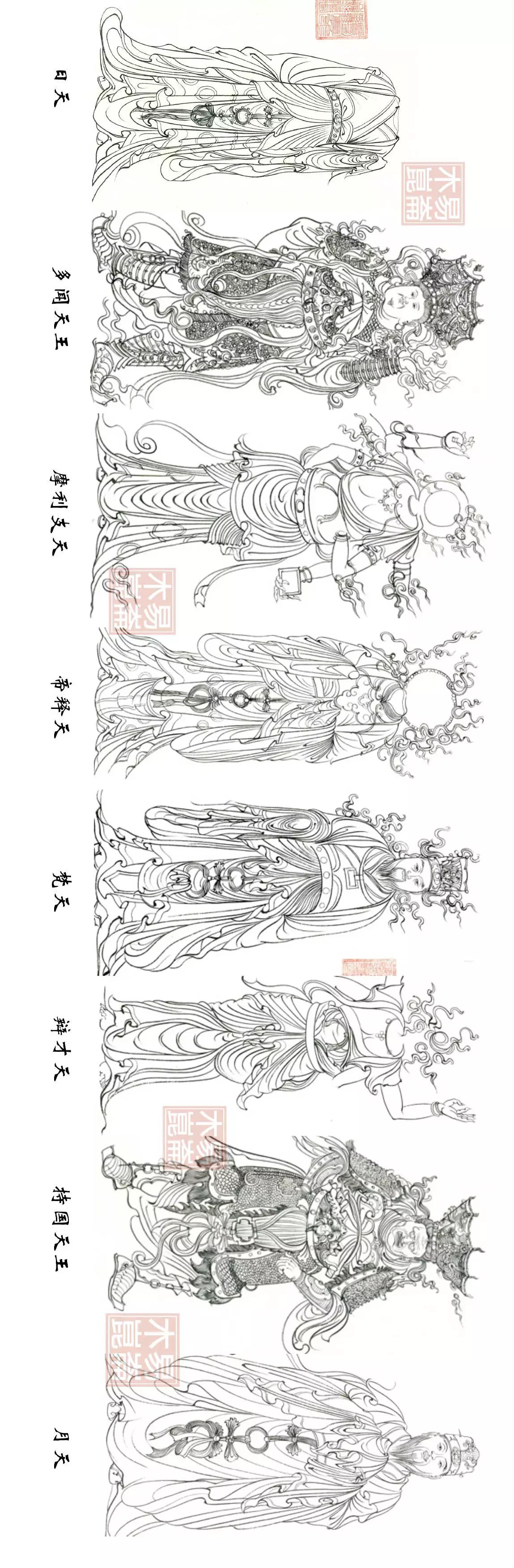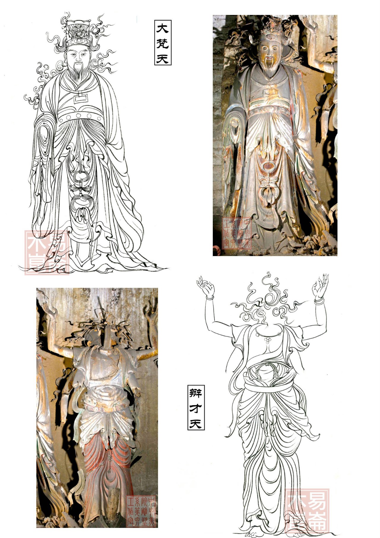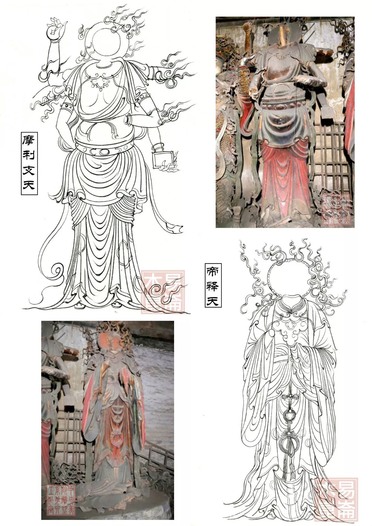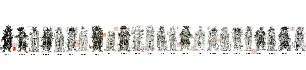 铁佛寺最震撼到人的心灵的彩塑当属环绕佛殿四周的二十四诸天造像。2016年初冬,一次偶然的机会,我再次经过铁佛寺,并有幸在寺内留了下来,用毛笔记录了二十四诸天的一些形象。