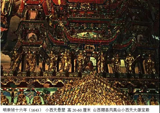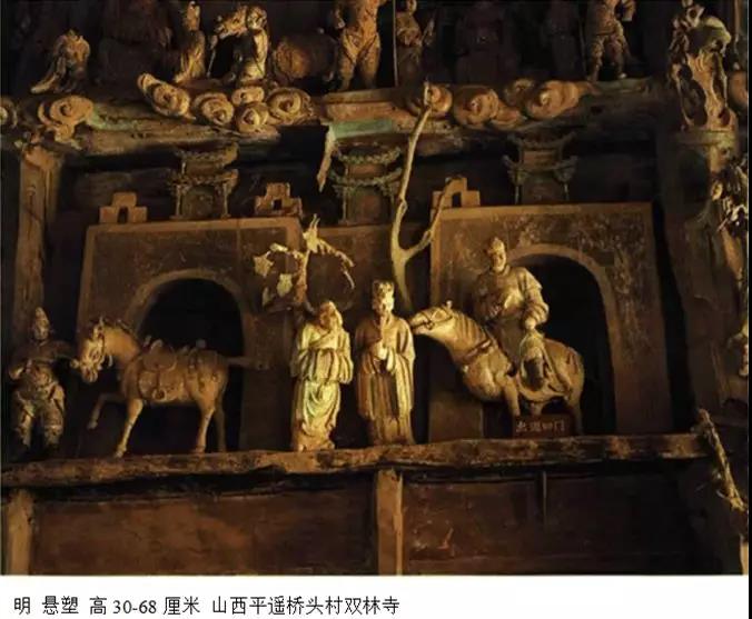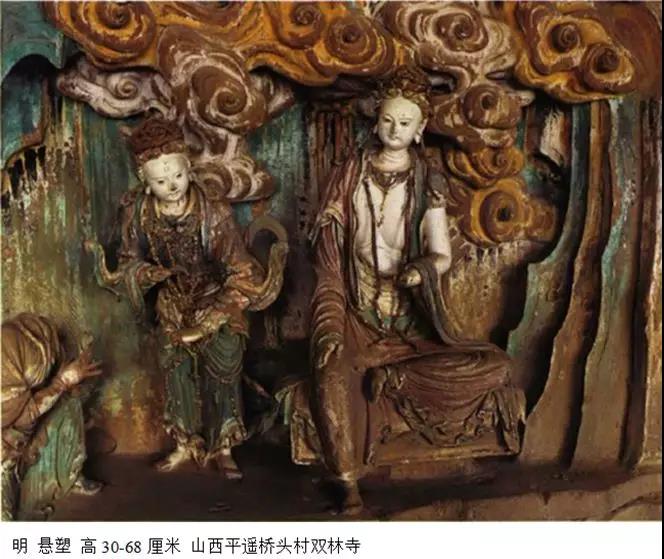西天、平遥双林寺和五台殊像寺的悬塑。明朝末年宗教艺术急剧衰退,佛教造像大都趋于呆滞、偃化,