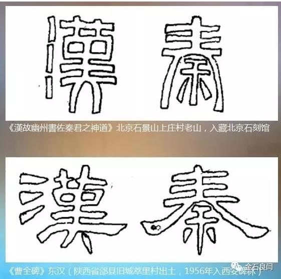 《漢故幽州書佐秦君之神道》北京石景山上庄村老山,入藏北京石刻馆《曹全碑》东汉(陕西省郃县旧城萃里村出土,1956年入西安碑林)
