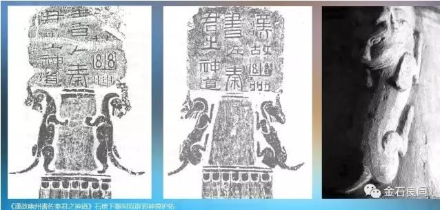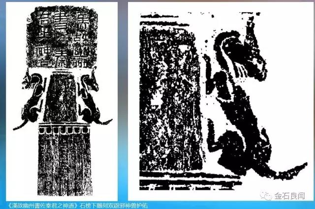 《漢故幽州書佐秦君之神道》石榜下雕刻双辟邪神兽护佑