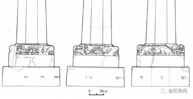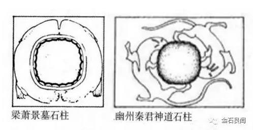 南朝萧景神道石柱础石与东汉秦君神道石柱础石对比