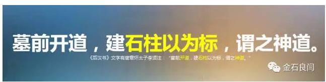 3、《后汉书 · 光武十王列传》: “大为修冢茔,开神道,平夷吏人冢墓以千数。李贤注曰:“墓前开道,建石柱以为标,谓之神道。”