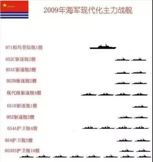 这是1999年、2009年、2019年,三个十年中国海军实力的对比图。