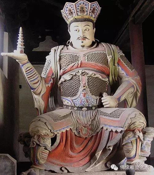 北方多闻天王常见手持伞或是塔,持伞象征雨;若是持塔,是根