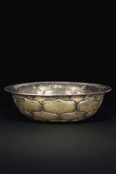 非常罕见的鎏金莲纹银盌,唐朝,直径为24.5厘米 1052 g
