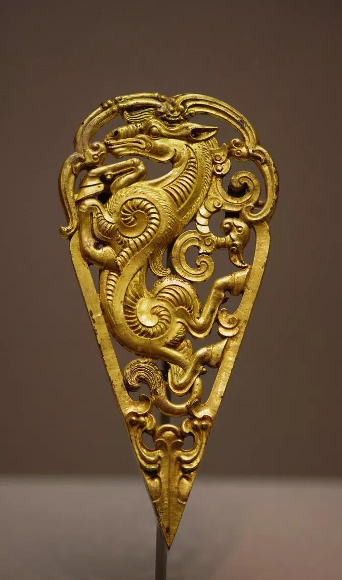 西汉社会经济极为发达。汉武帝以来雄才大略,打通了河西走廊,建立西域都护府后,大量中东地区的黄金源源不断流入中国,换取丝绸。汉代的黄金数量惊人,所以使用黄金装饰的器物也数量众多,金碧辉煌。图为西汉鲜卑头,也就是带扣。他的来历改天跟大家讲。