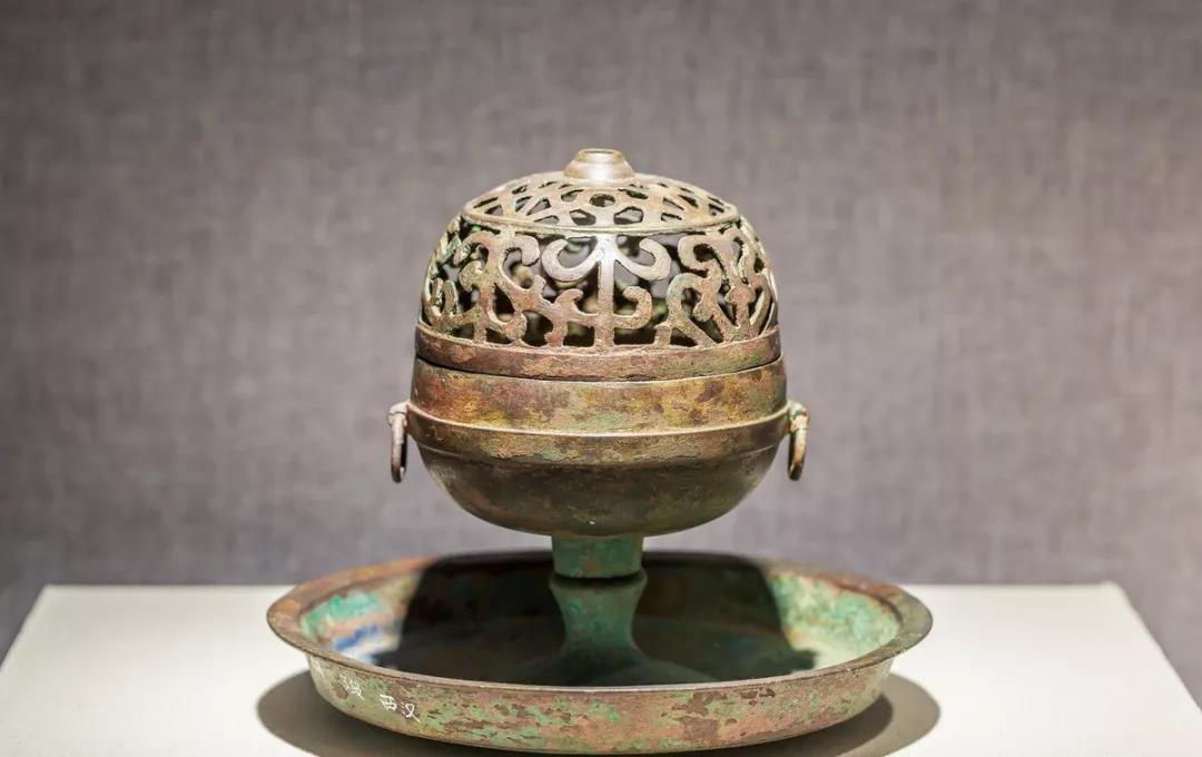 贵族,肯定要香喷喷的。我国古人用香的历史可谓久远。汉代的熏炉就是古人用来熏香的实用器。这件熏炉设计巧妙,底座有承盘,香灰不容易漏出。炉身有环耳,点燃之后移动不会烫手。器盖如山,故又称博山炉。
