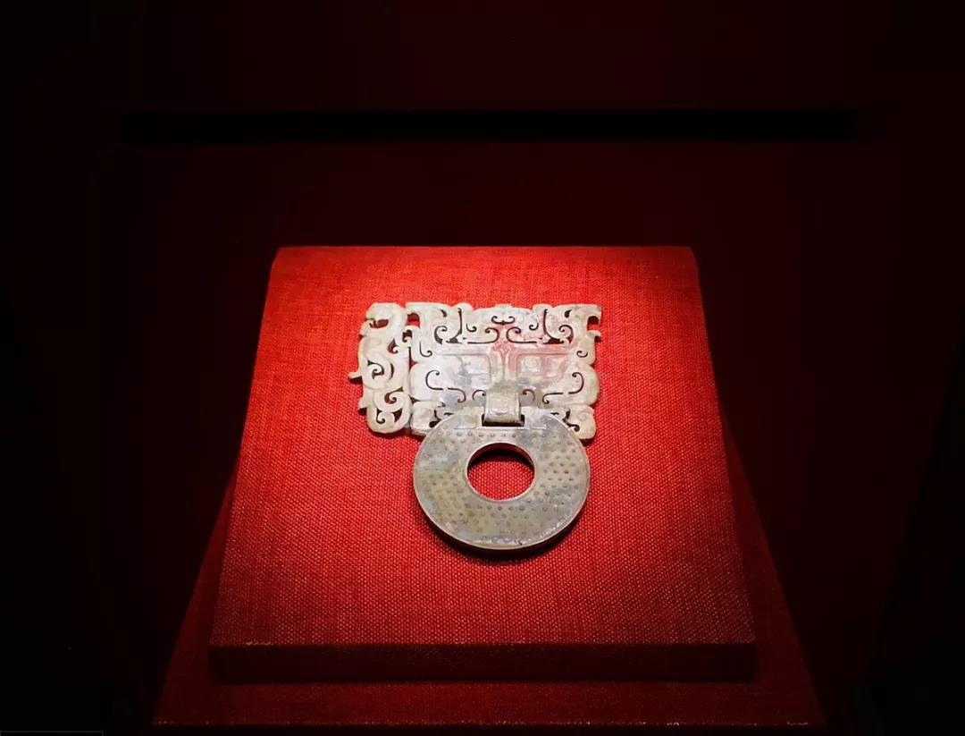 特别是玉璧采用活环连接玉壶,工艺复杂,难度极高,可谓空前绝后之物。此物应该是某种漆器上的装饰。原物则更加富丽堂皇。