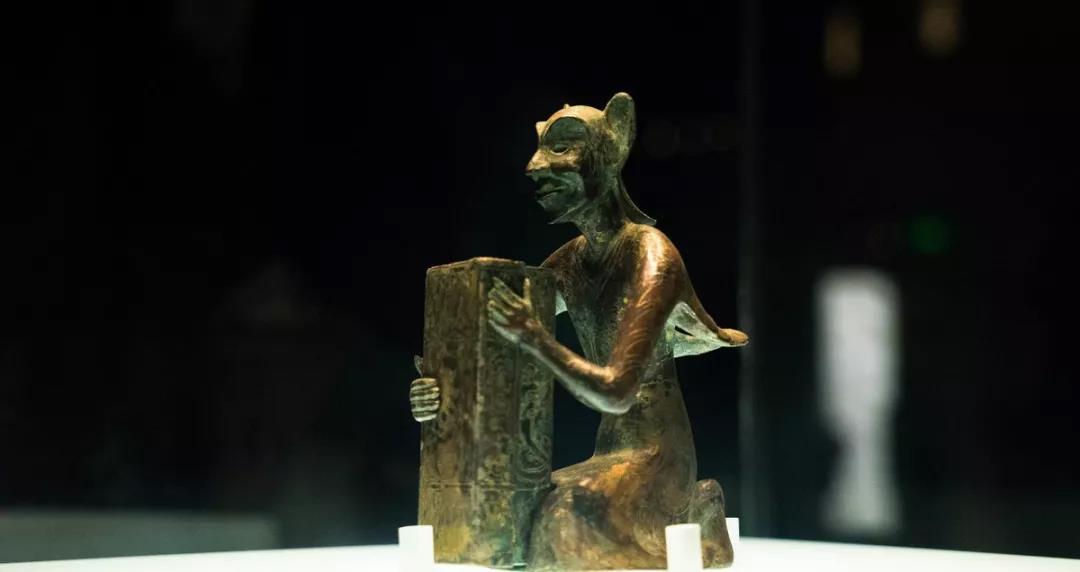 进入西周之后,人类创造的社会财富越来越多。帝王将相们也从茅茨土阶进步到钟鸣鼎食。诸侯们吃饭,不弄套编钟敲击奏乐,不弄个七鼎六簋几百斤吉金陪衬,那不叫吃饭。到了西汉,更是如此。图为西汉海昏侯墓出土青铜钟虡(ju)。这玩意是刘贺用来悬挂编钟的立柱。