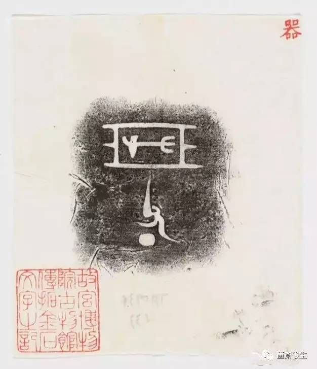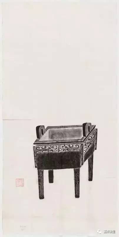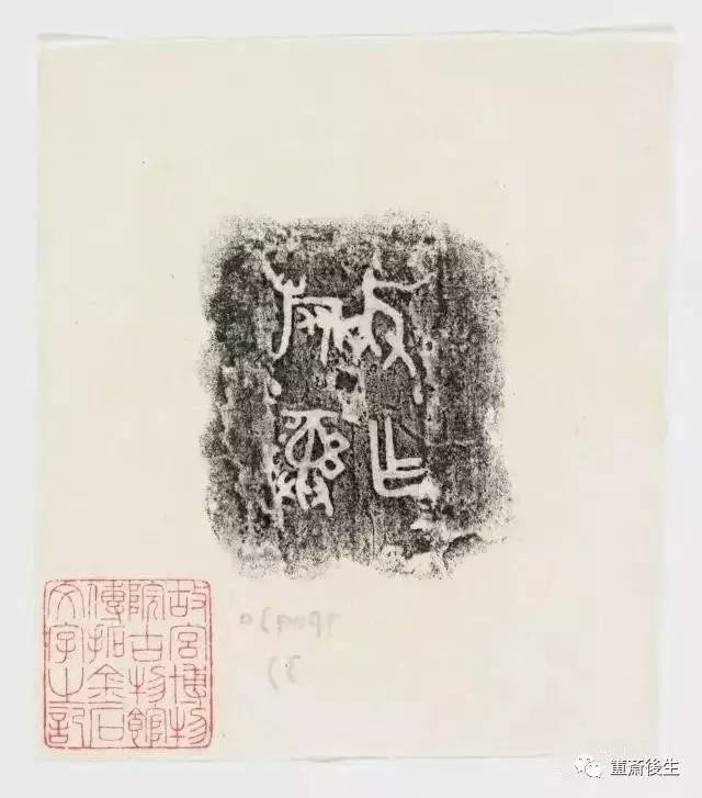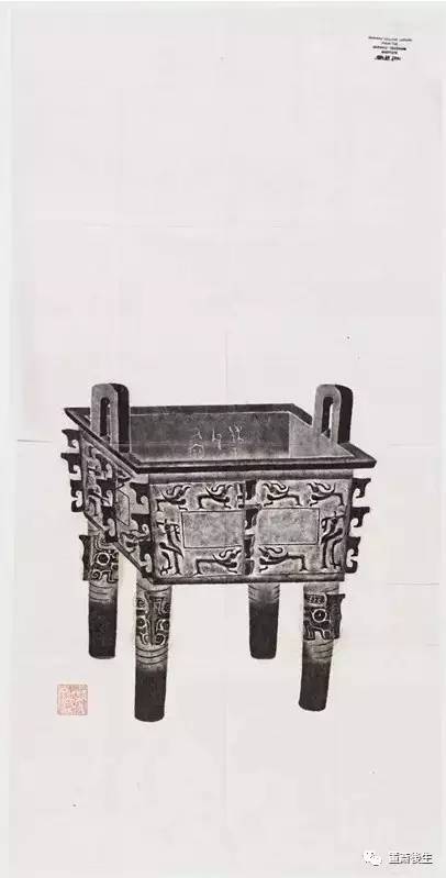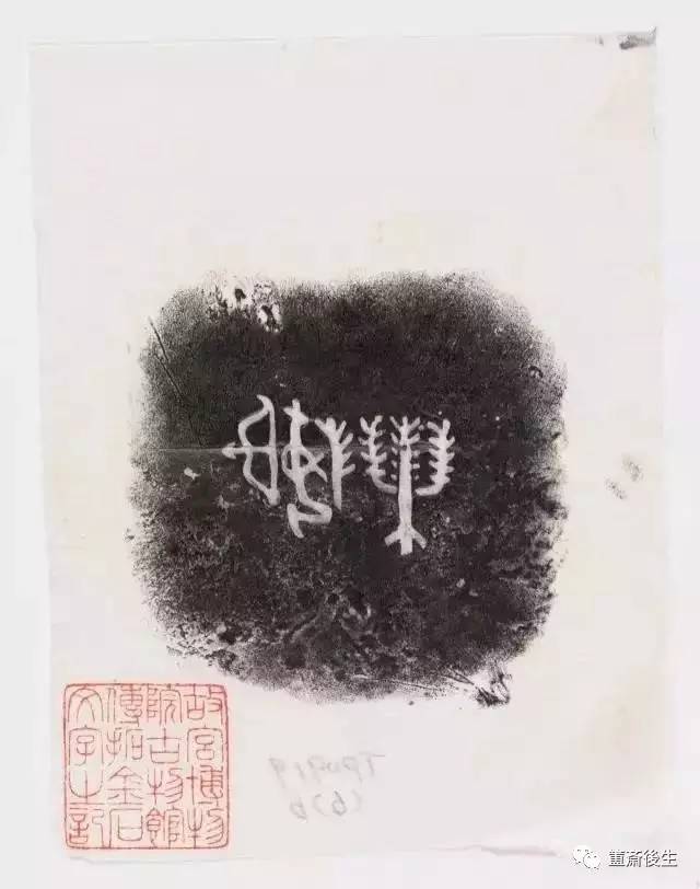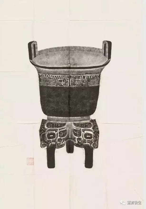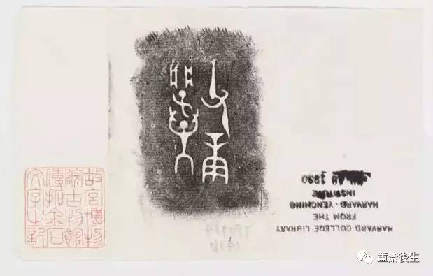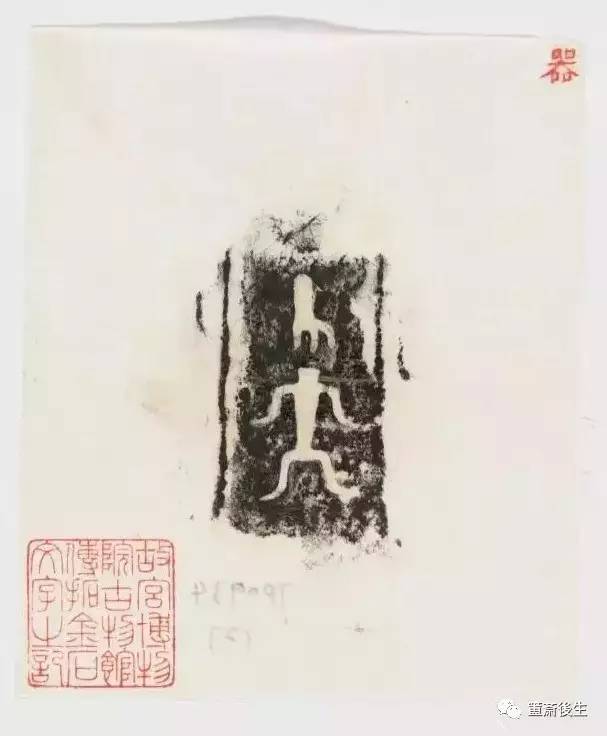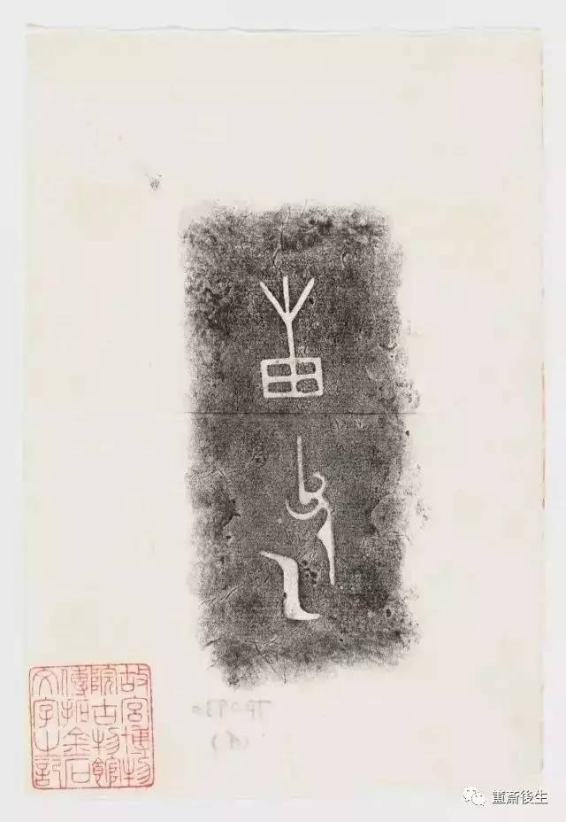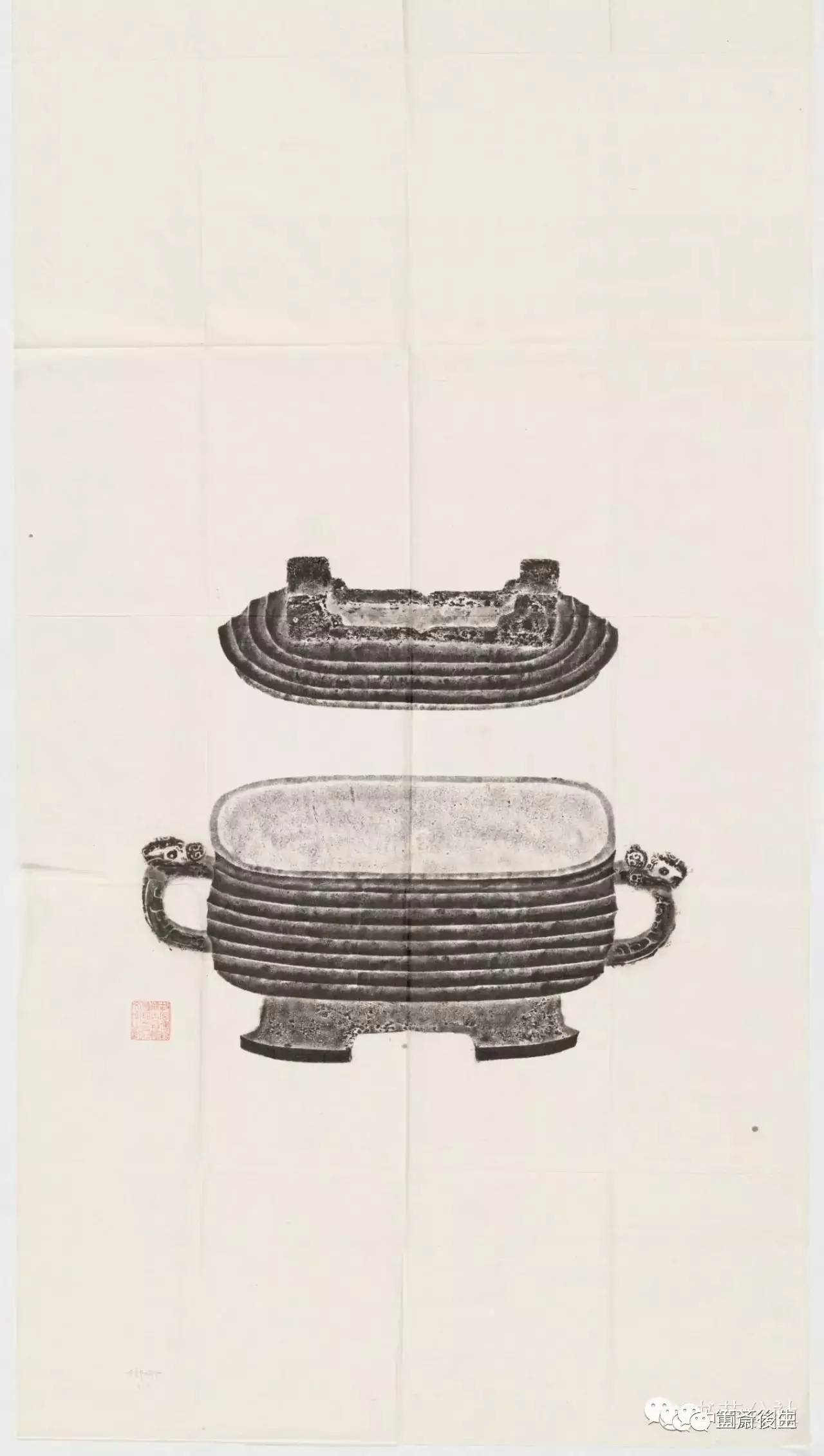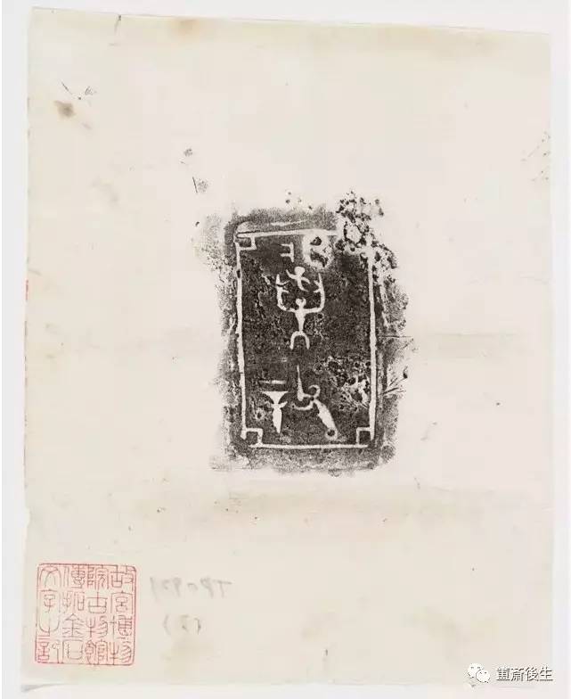 故宮博物院古物館傳拓亞方彜 . 原刻. [China : s.n., 周, between 1027 and 256 B.C.]. 拓片, 摺葉, 未托裱, 墨紙尺寸: 33 x 19 cm + 4 x 3 cm. 民國拓本; 全形拓. 金文.