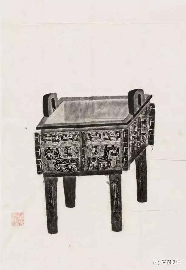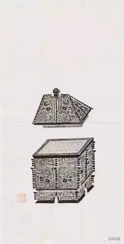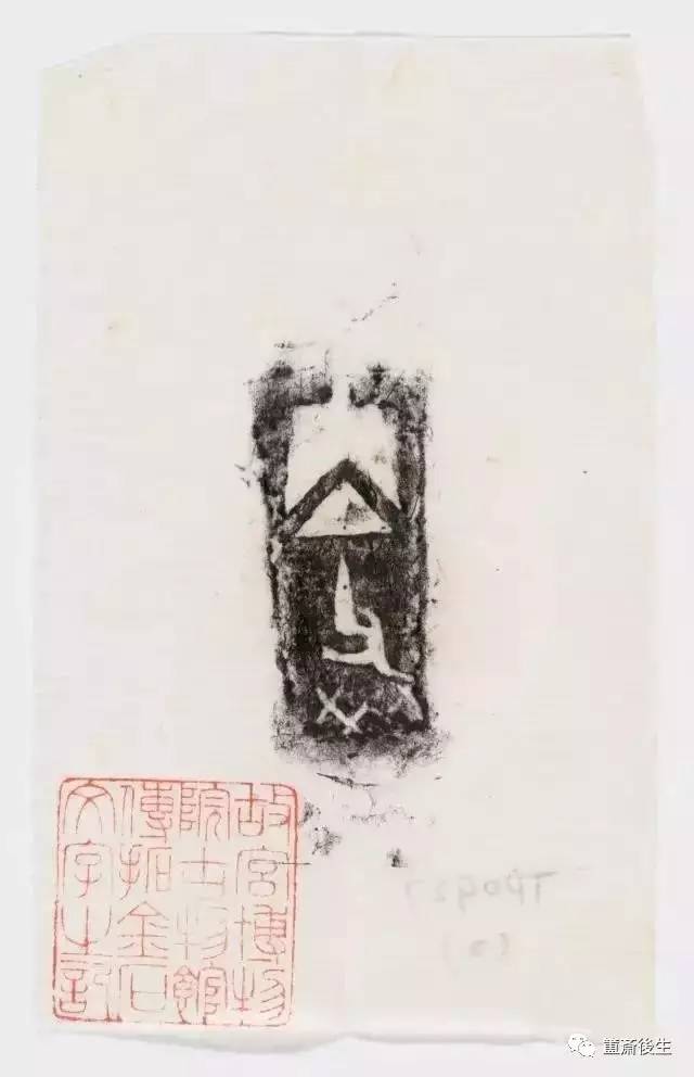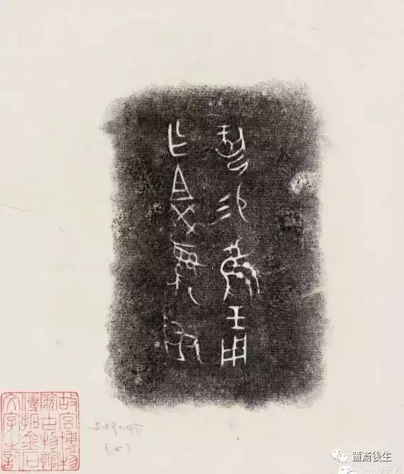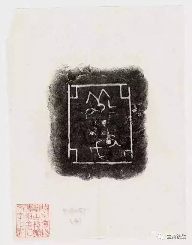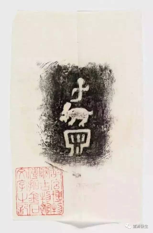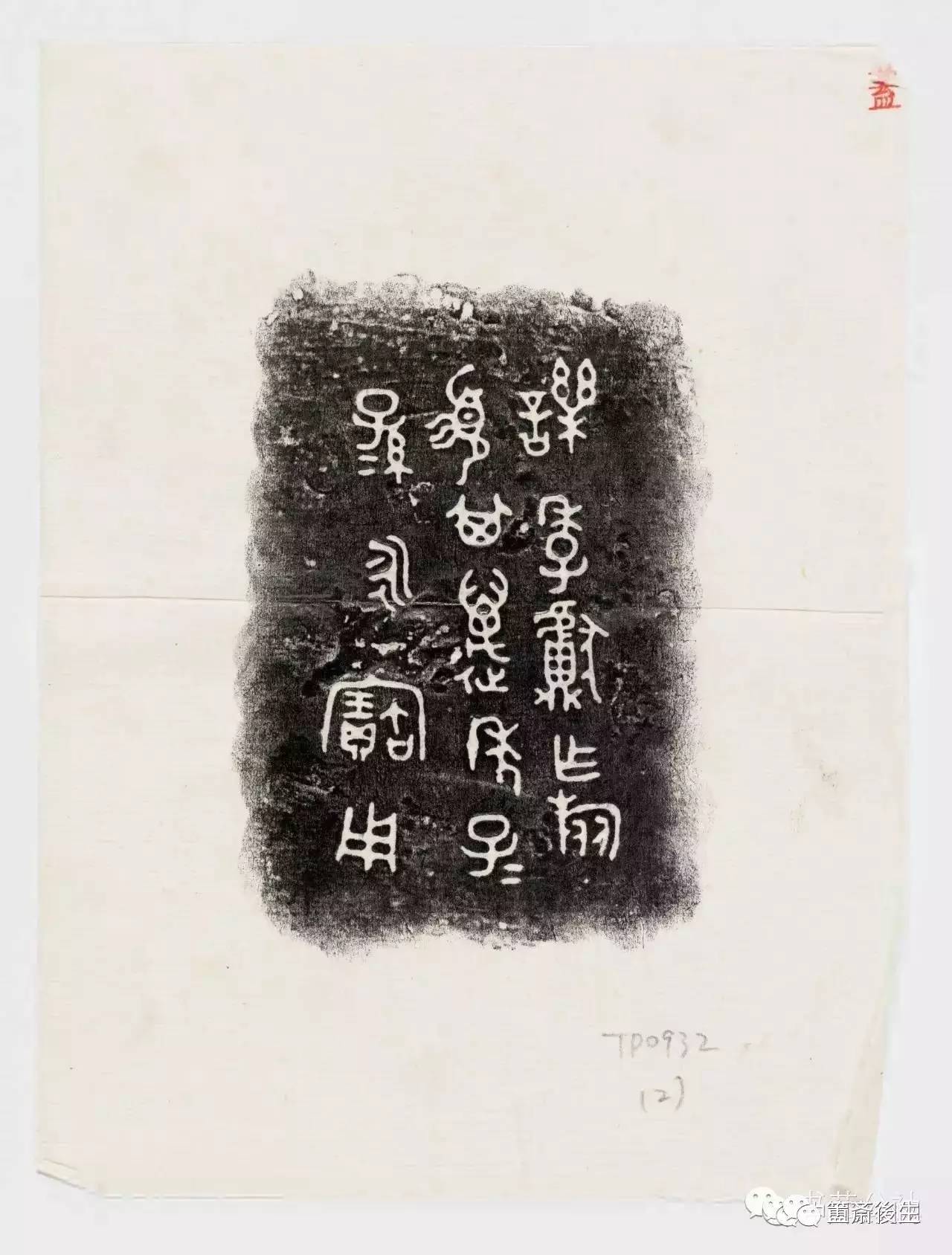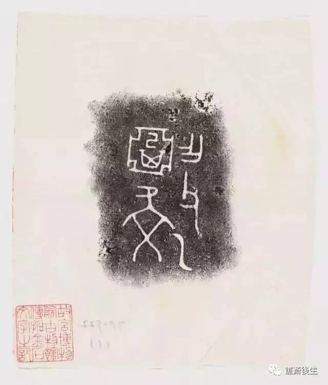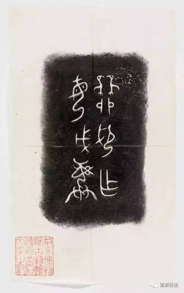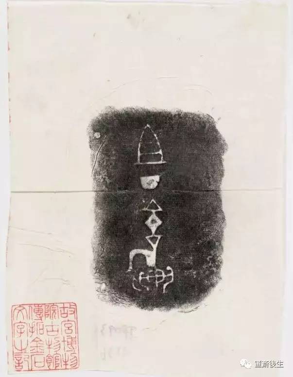 故宮博物院古物館傳拓亞方彜 . 原刻. [China : s.n., 周, between 1027 and 256 B.C.]. 拓片, 摺葉, 未托裱, 墨紙尺寸: 33 x 19 cm + 4 x 3 cm. 民國拓本; 全形拓. 金文.