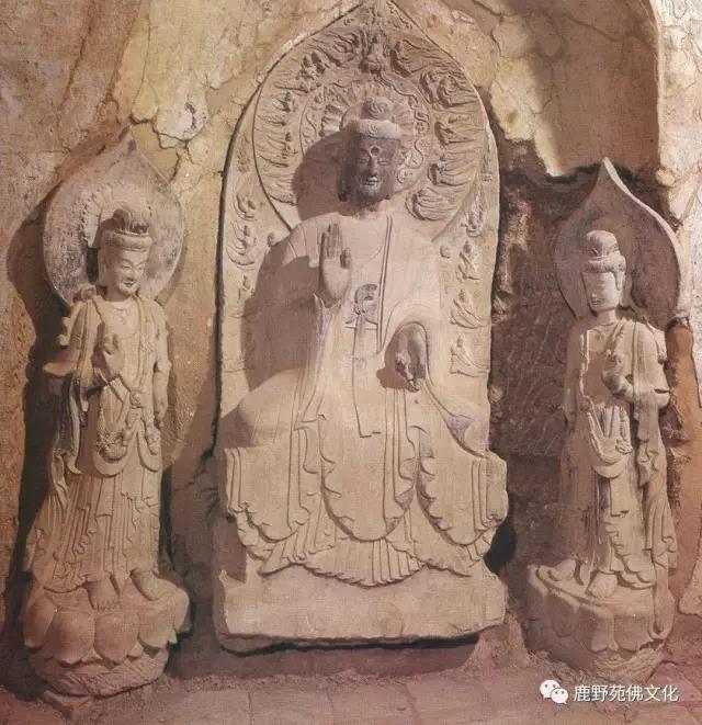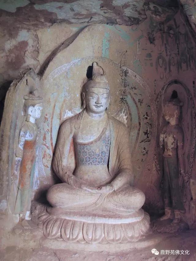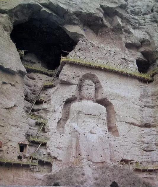 隋代主尊释迦牟尼佛高16公尺、文殊菩萨和普贤菩萨均高13公尺