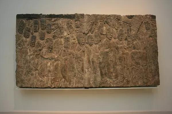 只是由于面积太大,浮雕只能分批运输。到了美国后,帝后礼佛图被一分为二,皇帝礼佛的部分收藏于美国纽约大都会艺术博物馆中,皇后礼佛的部分收藏在堪萨斯纳尔逊艺术博物馆中。孝文帝和皇后,自此天各一方。
