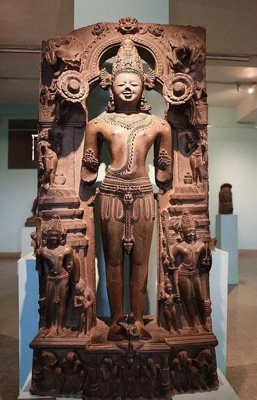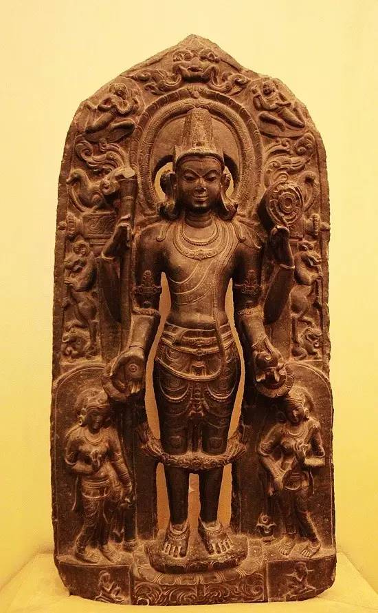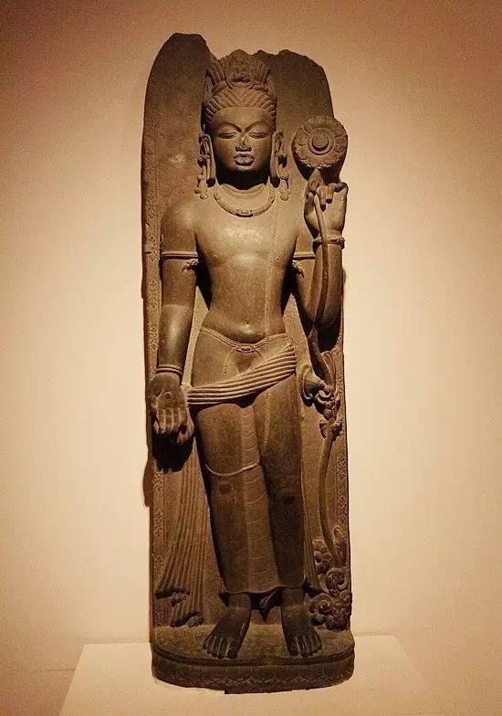 西元320─500年,笈多(Gupta )王朝在北印度掘起,封建制度取代了长期存在的奴隶制度,政治比较开明,文化兴盛,产生了精致的雕刻、古典的梵文诗集、戏剧,更出现了数学及天文学上的论文,是印度史上的黄金时代,震古铄今的那烂陀佛教大学也在鸠摩罗笈多一世时修建,是大乘佛教的中心。在Ancient and Medieval Sculpture展示室中有一尊释迦牟尼佛的头像,简洁的刻划,生动鲜明,当时大乘佛教是笈多文化的中心思想。