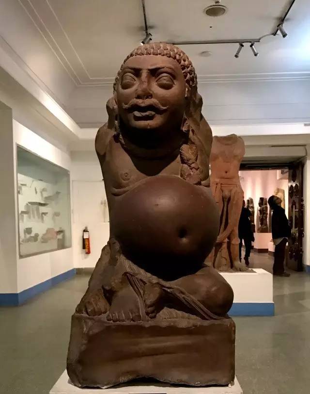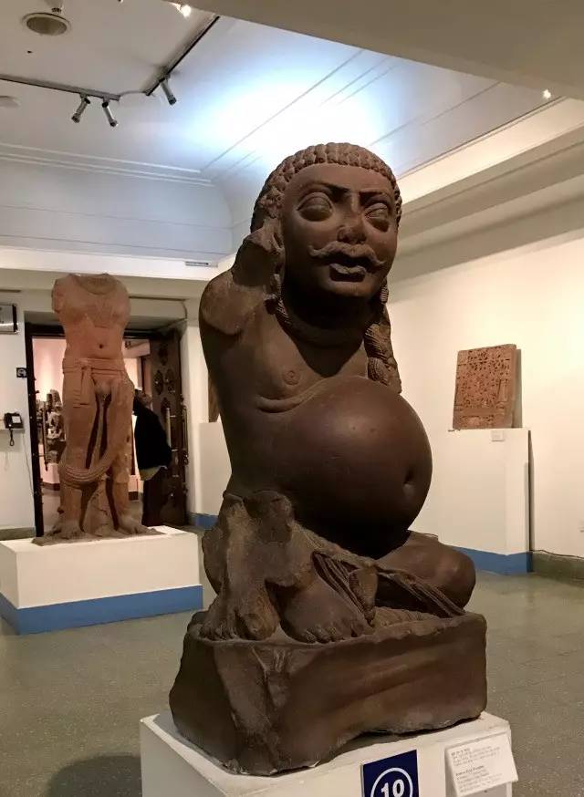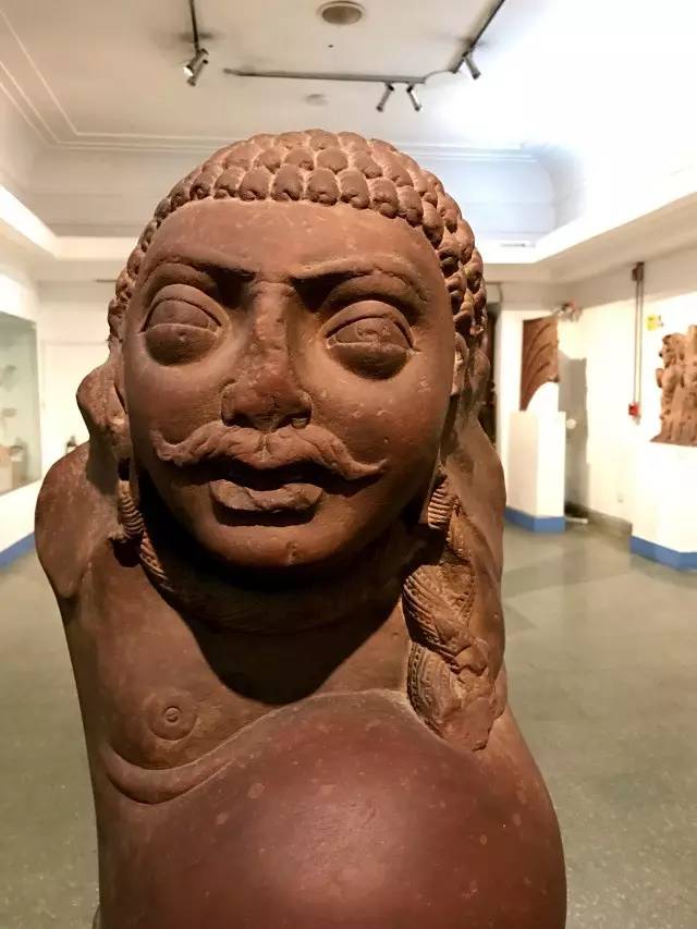 印度博物馆是一座白色廊柱的三层建筑物,座落在一条不是很热闹的街道边上,有铁栏杆围墙,两侧陈列着古代石雕的回廊引导参观者进入一个个代表着古印度各时代展室。史前文明展以陶偶、陶罐和石制、青铜制工具为代表。