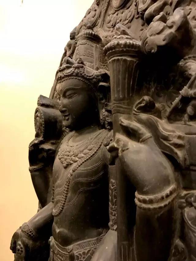 这里更多的展示,却是代表不同宗教和讲述不同宗教故事的大小石雕和铜雕。印度教、伊斯兰教和佛教的故事被雕刻在大大小小的石板、石方、石柱上,图案精美,保存完好,让人赞叹印度古代工匠的精工细作。