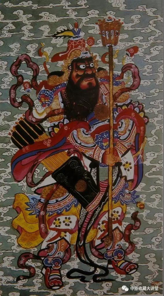 传说李世民当年杀人无数,包括自己的亲兄弟,都死在其手中。当了皇帝后,身心不适,总是疑神疑鬼,夜里常做噩梦,以至于其“寝门外抛砖弄瓦,鬼魅呼叫,三十六宫,七十二院,夜无宁静”(《历代神仙通鉴》)。为使太宗休息好,将军秦琼和尉迟恭主动请求在夜里戎装守卫宫门。当夜果然无事,太宗大喜。可天天如此,他二人也吃不消。于是有人献上一计:让画工把秦琼和尉迟恭二人披甲执槊、怒目圆睁的威武神态描绘出来,张贴在宫门两侧。从此以后,邪祟全消。后世沿袭下来,二人就成了门神。至于门神何时从宫廷走向民间,以至于老百姓家,每逢春节也张贴门神镇宅,则无从查证。