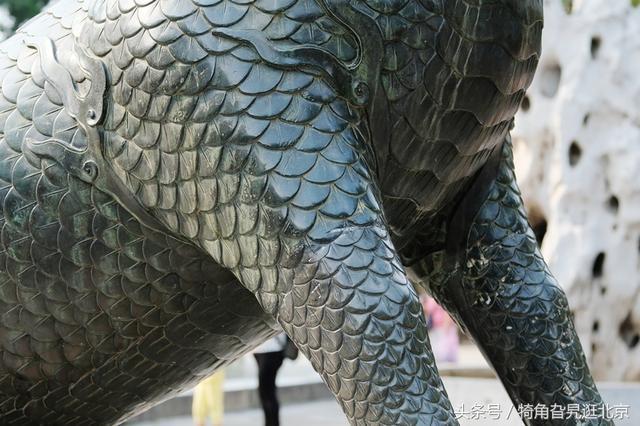 这只麒麟是经过修复的,如果近前仔细观看的话会发现麒麟的两只前腿上都有焊接的痕迹,上下半截颜色和花纹也略有不同,不过多数游客是不会注意到这些细节的。