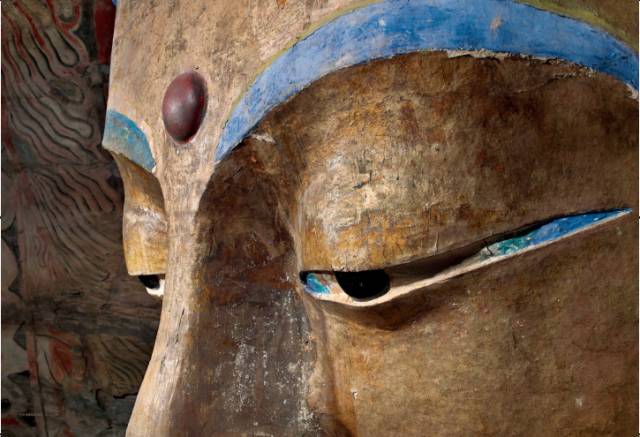 主尊佛像眼部特写,云冈石窟第5窟北壁。