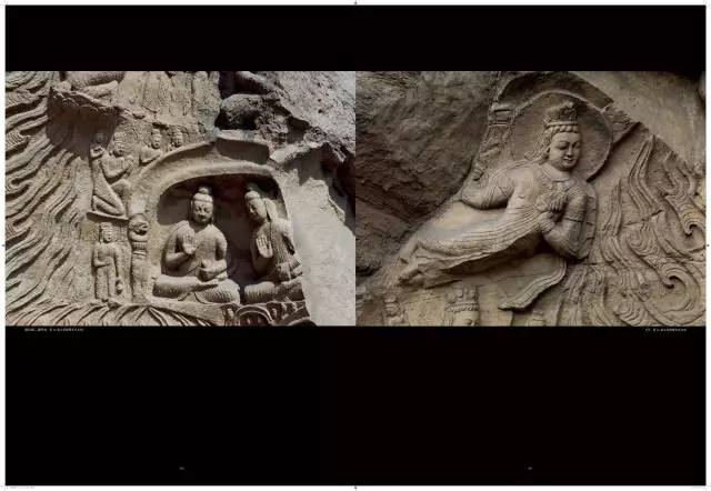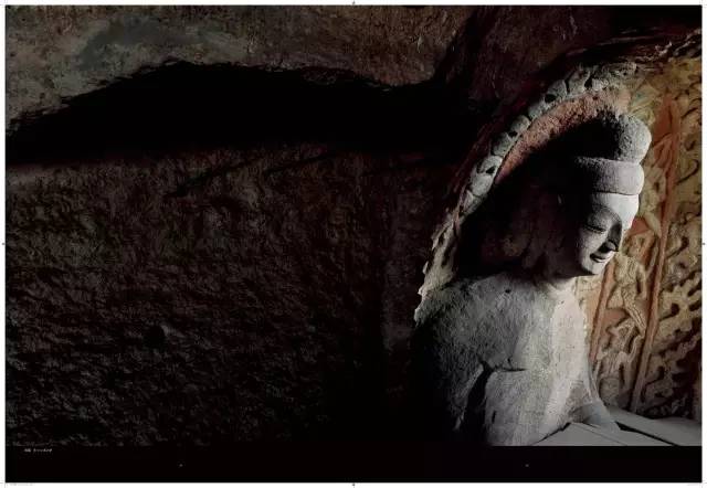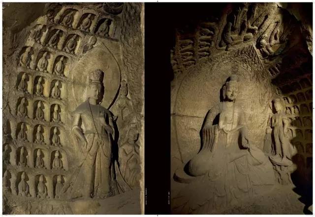 与早期造像相比,中期造像健硕、美丽依旧,但似乎逐渐丧失了内在的刚毅与个性,雕刻如同拓制泥塑一样程式化了。大像、主像和重要造像的雕琢是精细的,普通性的造像略显草率,工匠洗练的刀法仿佛于漫不经心间流淌出来,反而给人以自由、活泼、奔放的感觉。部分佛像开始变得清秀,面相适中;佛衣除了袒右肩式、通肩式袈裟之外,出现了“褒衣博带”样式。菩萨的衣饰也发生了变化,除头戴宝冠外,又流行起花蔓冠;身佩璎珞,斜披络腋,转变为身披帔帛;裙衣贴腿,转变为裙裾张扬。