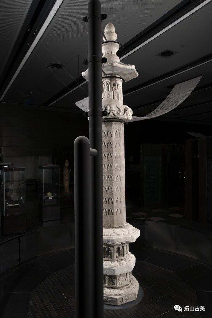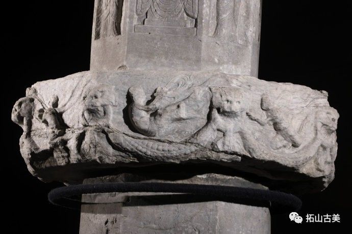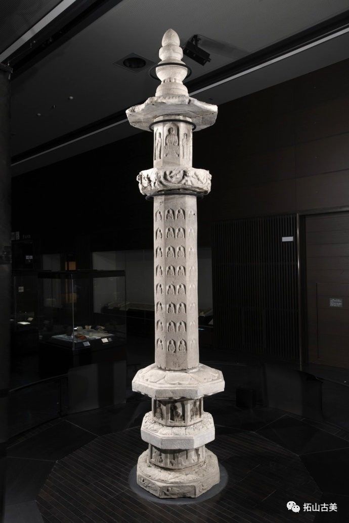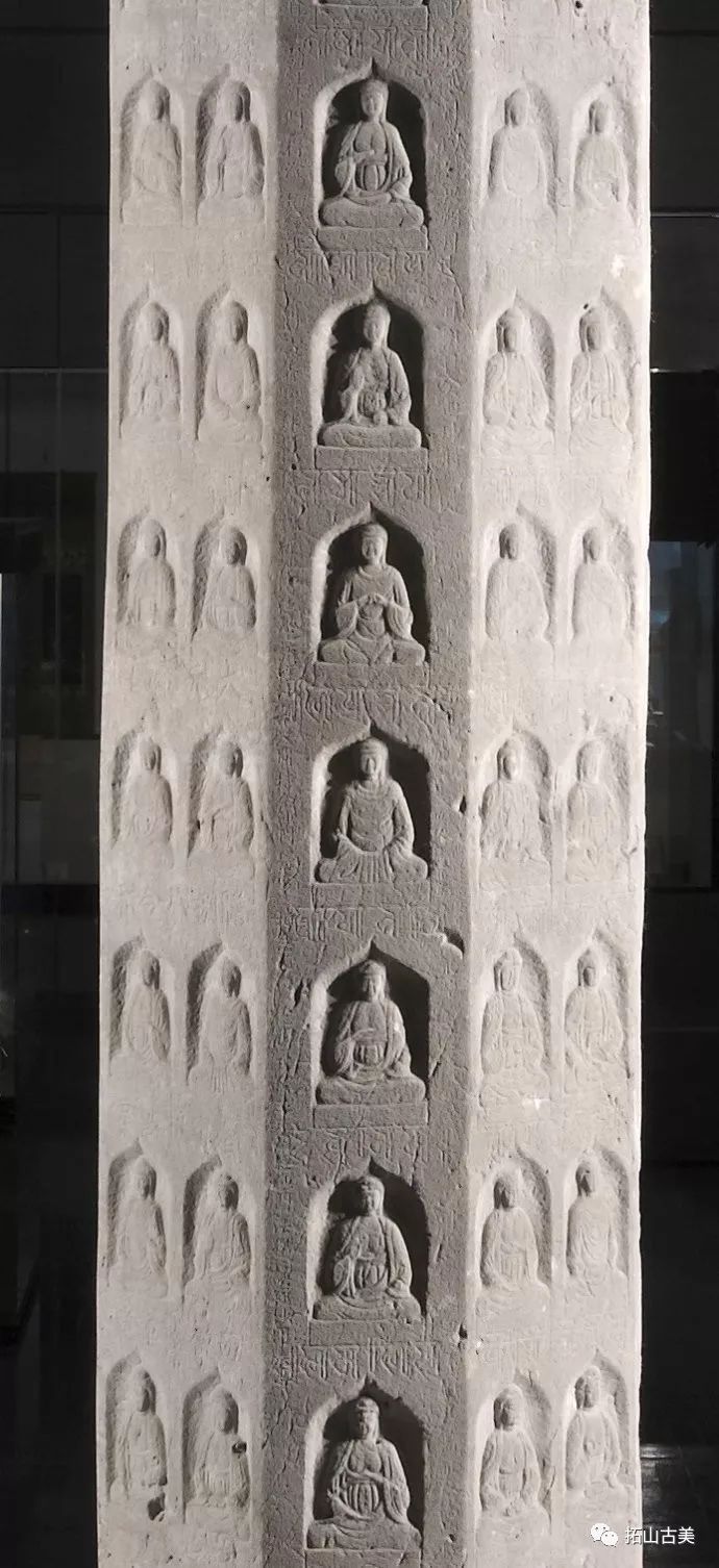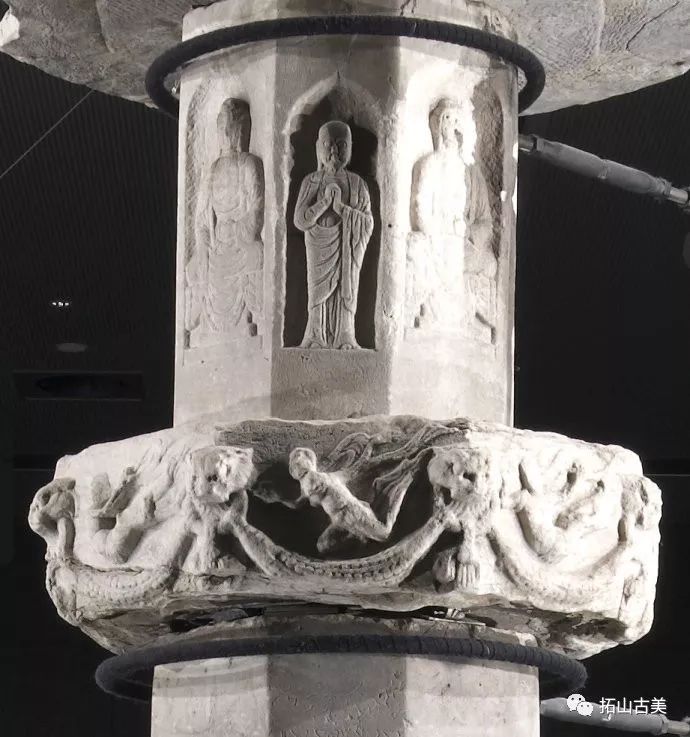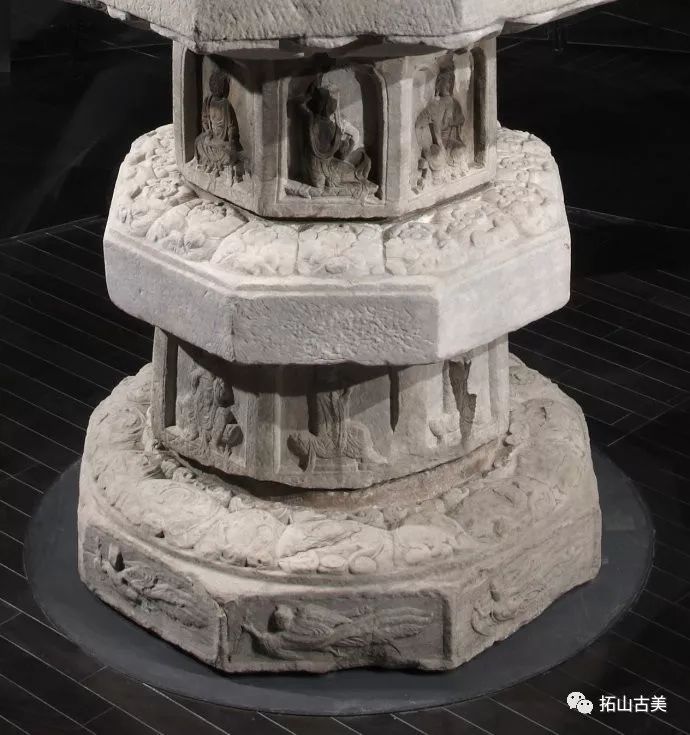 辽代经幢以其造型风格独特、雕刻技艺精湛而闻名于世。这件精美稀有的辽代石幢至今极为完整(通高5.4米,辽大康十年,1084年),原在河北涿州东街路侧,幢身和幢座均为八面,双层台座,束腰部分也雕刻有伎乐天人,上下二层共十六身,所演奏乐器与戒台寺石幢大同小异,有趣的是上下二层束腰部分也各出现了一位手持帔帛,屈膝伸足的伎乐形象,舞姿与戒台寺伎乐完全相同,据此可推断戒台寺幢的年代大致应也在辽大康年(1075-1084)前后所雕刻,另方面也可看出辽代的石雕艺术在继承契丹人固有文化和中原雕刻艺术传统的基础上,又吸收了佛教文化,辽代石幢从整体构造到细部图案纹饰都已经十分完善。其造型风格独特、雕刻技艺精湛,图像逼真生动,各具特征,是一座极为稀有的辽刻艺术珍品。
