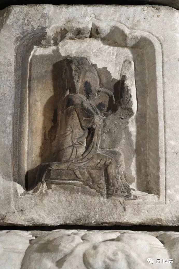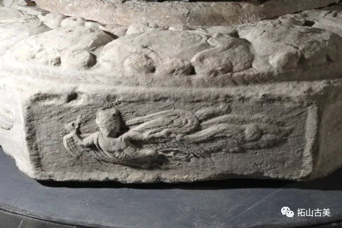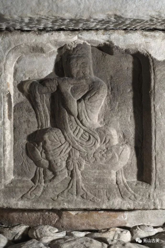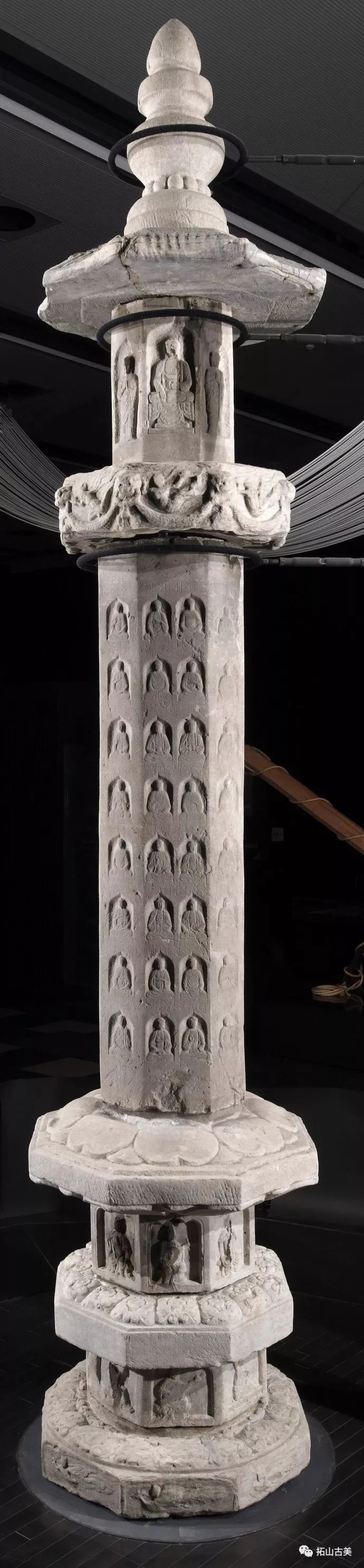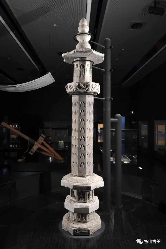 辽代经幢以其造型风格独特、雕刻技艺精湛而闻名于世。这件精美稀有的辽代石幢至今极为完整(通高5.4米,辽大康十年,1084年),原在河北涿州东街路侧,幢身和幢座均为八面,双层台座,束腰部分也雕刻有伎乐天人,上下二层共十六身,所演奏乐器与戒台寺石幢大同小异,有趣的是上下二层束腰部分也各出现了一位手持帔帛,屈膝伸足的伎乐形象,舞姿与戒台寺伎乐完全相同,据此可推断戒台寺幢的年代大致应也在辽大康年(1075-1084)前后所雕刻,另方面也可看出辽代的石雕艺术在继承契丹人固有文化和中原雕刻艺术传统的基础上,又吸收了佛教文化,辽代石幢从整体构造到细部图案纹饰都已经十分完善。其造型风格独特、雕刻技艺精湛,图像逼真生动,各具特征,是一座极为稀有的辽刻艺术珍品。
