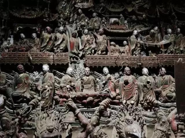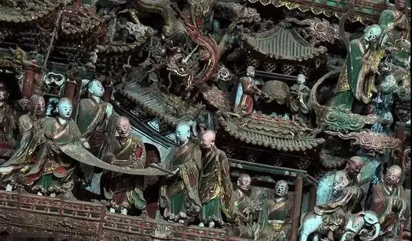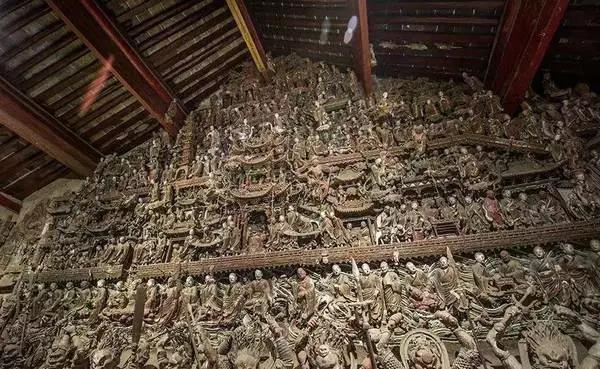 殿内塑满佛传故事、五百罗汉渡海、