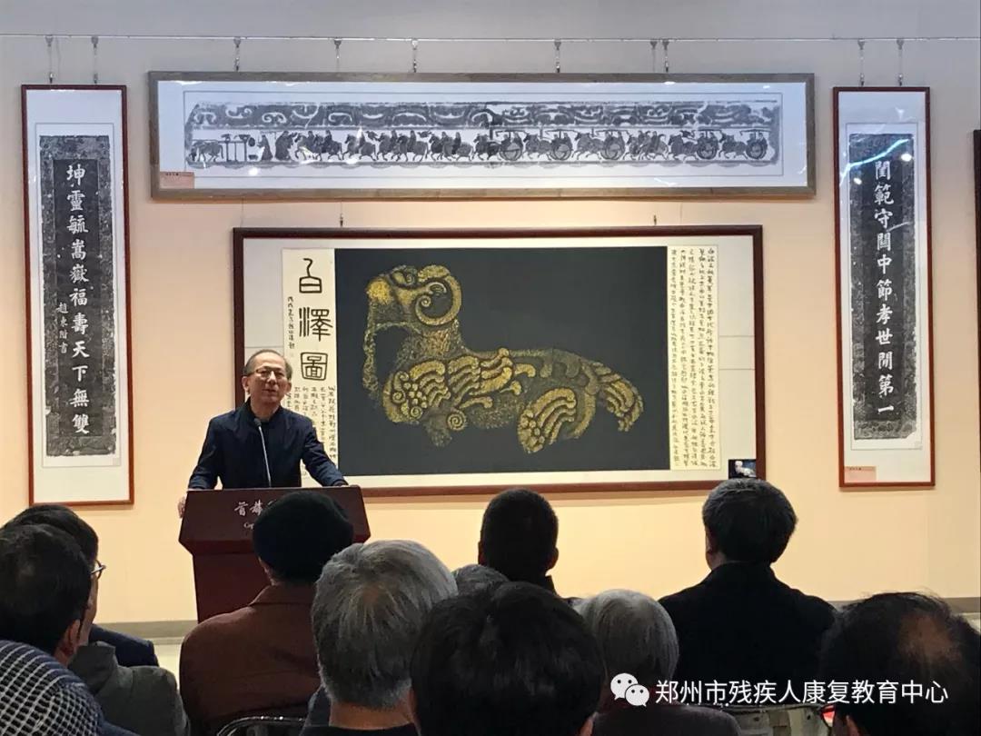 国家文物局原局长张柏、总参谋部四部原部长戴清民、中国国际经济技术合作促进会副会长王志宗、中国国际经济技术合作促进会秘书长张士文、中国文化研究会副会长段新富、中国残联宣文处处长王宏伟、华夏石刻艺术发展研究院院长吴杰森、中国文化研究会金石专业委员会主任张胜吾、北京石刻艺术博物馆馆长郭豹、首都图书馆副馆长陈坚、华夏石刻艺术发展研究院执行院长王书玉、郑州市残联党组书记、理事长张群保、郑州市文联主席钟海涛、郑州市残联副理事长周长信和北京文博系统部分资深专家和著名学者,郑州市残疾人康复教育中心传拓培训班的师生和全国各地传拓爱好者200余人参加了今天的开幕式。