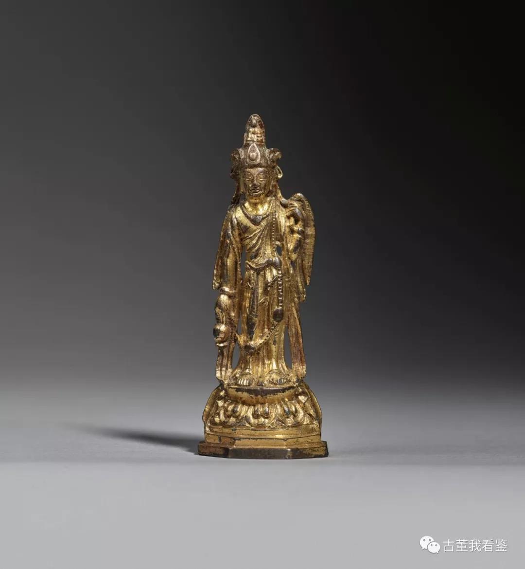 此尊觀音菩薩金姿寶相鑄造精良,雖依隋代經典之制,然趨唐代豐腴之韻。身形婀娜,體態俊雅,如是造型早在此像已見濫觴,後至唐代愈 加發展。