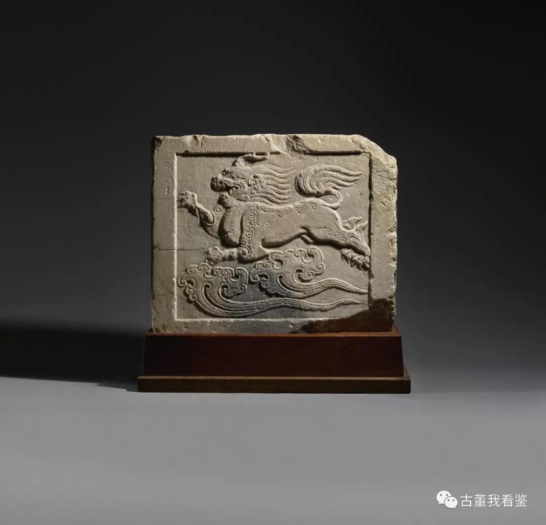 南梁蕭宏墓石碑亦可資參考,刊載於姚遷及古兵著,《南朝陵墓石刻》,北京,1981年,圖版55及56。蕭宏於天監元年(502年)受封臨川 郡王,普通七年(526年)薨。蕭宏墓石碑主面由八塊正方形小碑拼組而成,其上浮雕神獸雲紋。本品雕刻瑞獸體態愈加健壯強實,雲紋亦更 趨風格化,故於年代上應稍晚於蕭墓石碑例。