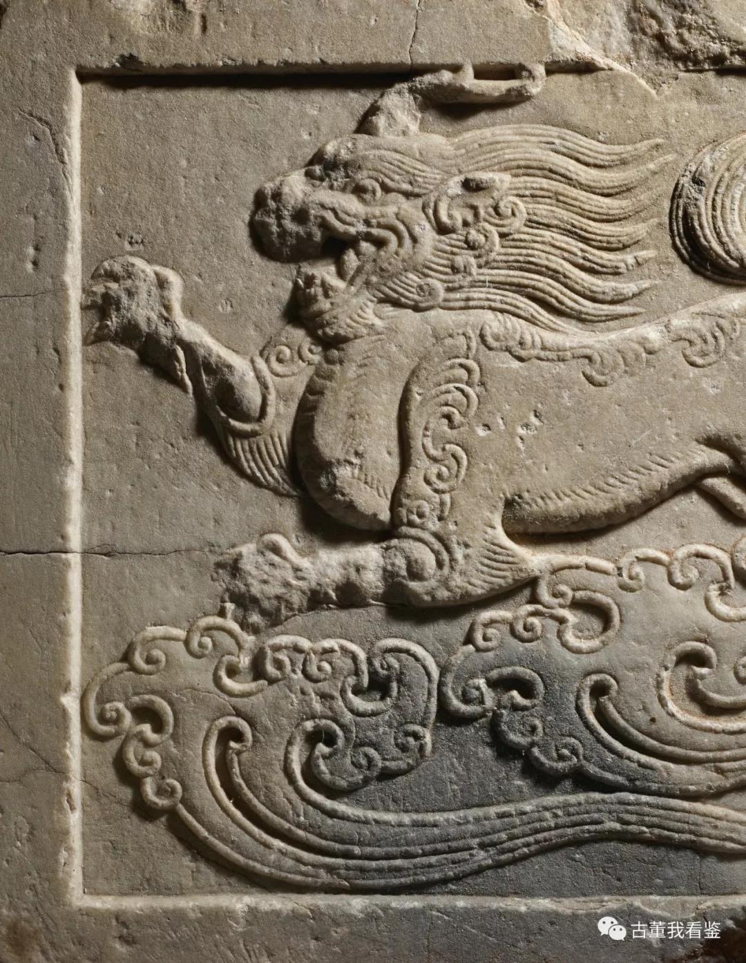 本畫像石或為墓陵裝飾構件,置放於棺室牆或門上以為裝點。淮安王李壽墓棺室四壁及門週所飾畫像石便與此相類似,其上亦浮雕神獸及相 類祥雲紋,現貯於新疆維吾爾自治區博物館,著錄於安吉拉•法爾科•霍沃等編,《Chinese Sculpture》,2006年,北京,圖2.39。李壽(唐 高祖之從父弟)墓建於貞觀五年(631年),位於高祖李淵之獻陵內。同時代其他墓寢多以壁畫為飾,或作石刻線畫,如李壽墓之浮雕裝飾風 格生動明快者,甚為少見。此般對比及差異,或證此類畫像石應特為皇親國戚、貴官顯宦陵寝所專製,用以護佑亡靈。