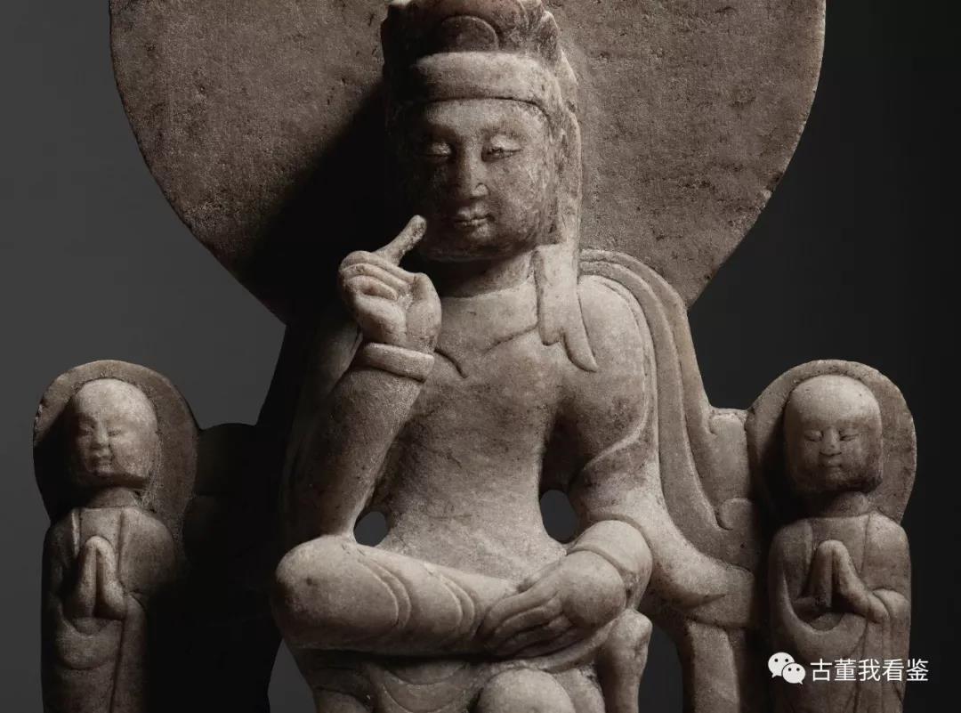 本品主像思惟造型乃此時期佛像最具特色之一。除非造像刻款表明,此類造型佛像身份一直未有定論,說法主要有二,一為悉達多太子(後 得道為釋迦牟尼佛)、二為乃彌勒菩薩,四、五世紀期間主要為前者,550年後則多為後者(見展覽圖錄《走向盛唐》,大都會藝術博物 館 ,紐約,2004年,頁266)。