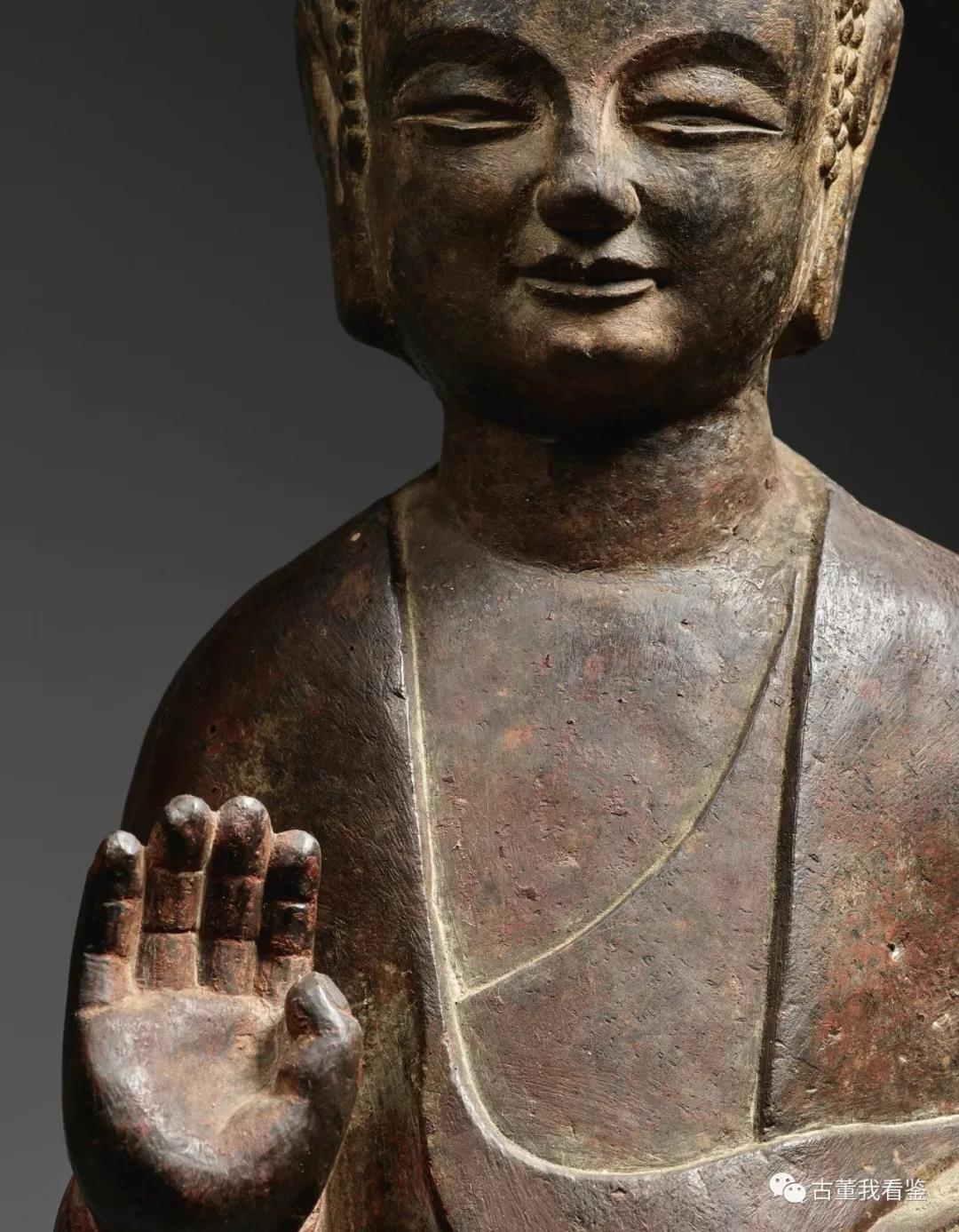 本品形制傳承六世紀中葉佛造像之盛行樣式,此類風格造像以東魏一朝為代表,集各地造像所長,融會貫通,至六世紀下半葉趨於成熟。此尊佛像歷千餘載猶保存完善,誠為可貴,所雕佛祖面容和善,笑靨溫藹,滿含慈悲、上智之情韻;衣袍簡素質樸,不禁教人托想釋迦牟尼冥思入定而悟道成佛時之衣著相貌。