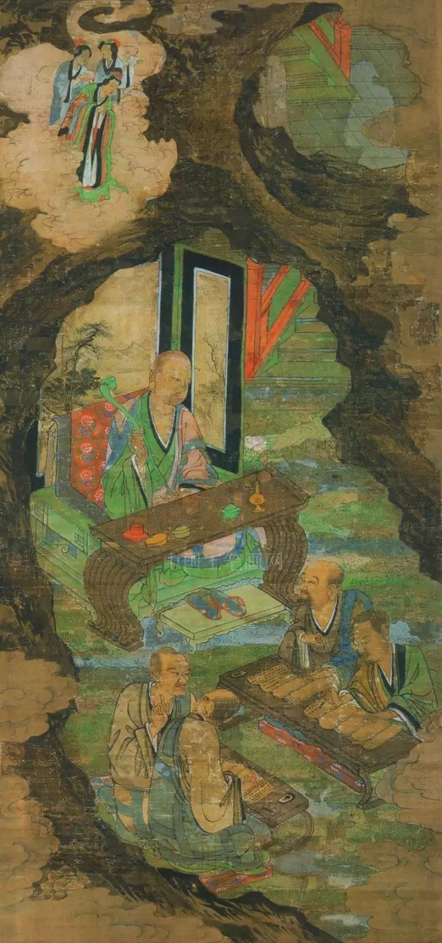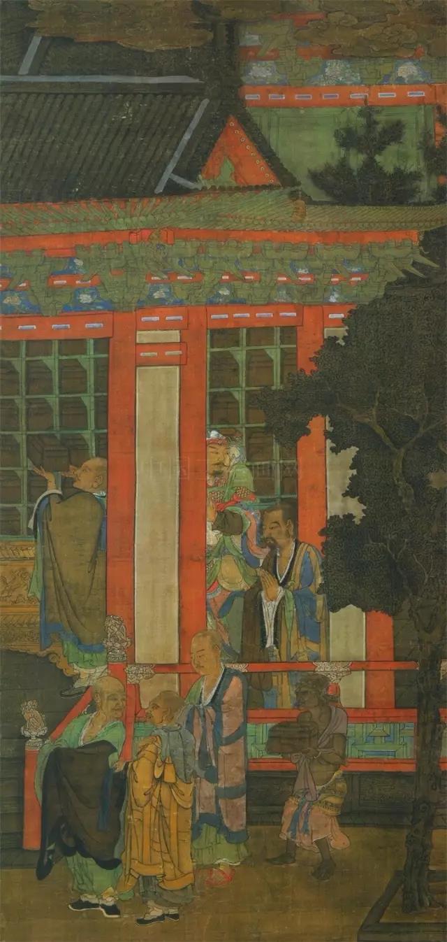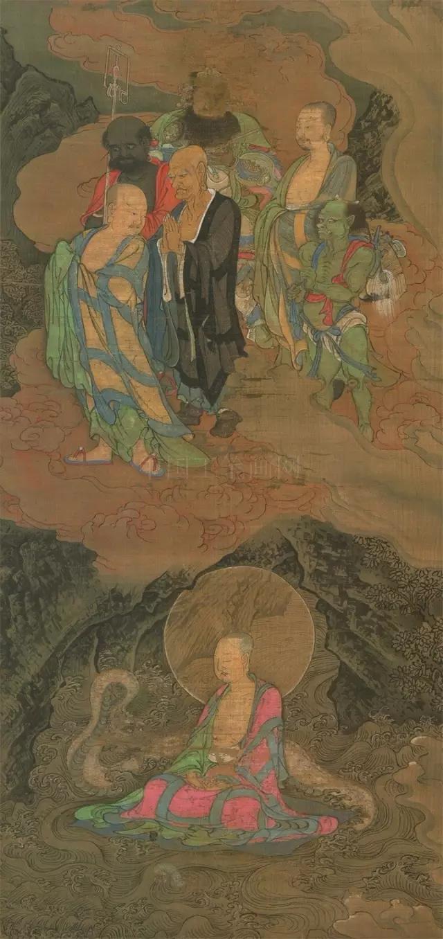 题材作品,描绘了佛教历史事件、佛教典故或者当时寺院僧人的集体生活场景等内容,大部分画作有用