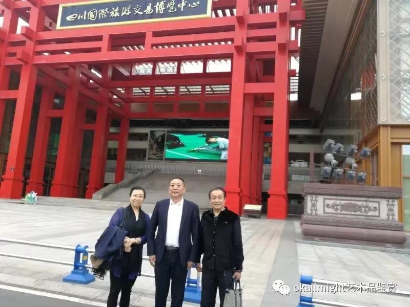 键先生、三星堆文化研究学者、资深收藏家梁锦华女士一行在四川最大的国际旅游交易博览中心考察。