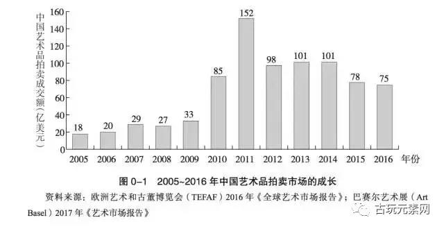 品拍卖,其成交额从 2005 年的 18 亿美元增长到了2016 年的 75 亿美元,而 2011 年的成