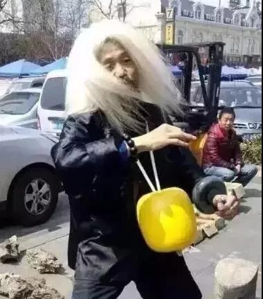 一头飘逸的长发,在狂风中摇摆,犹如仙人下凡一般,再看看他这一身的装扮: