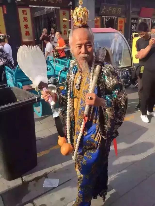 羽扇纶巾,谈笑自如。华丽丽的装备,掩盖不住的大仙风范,让地摊老板也不禁为之侧